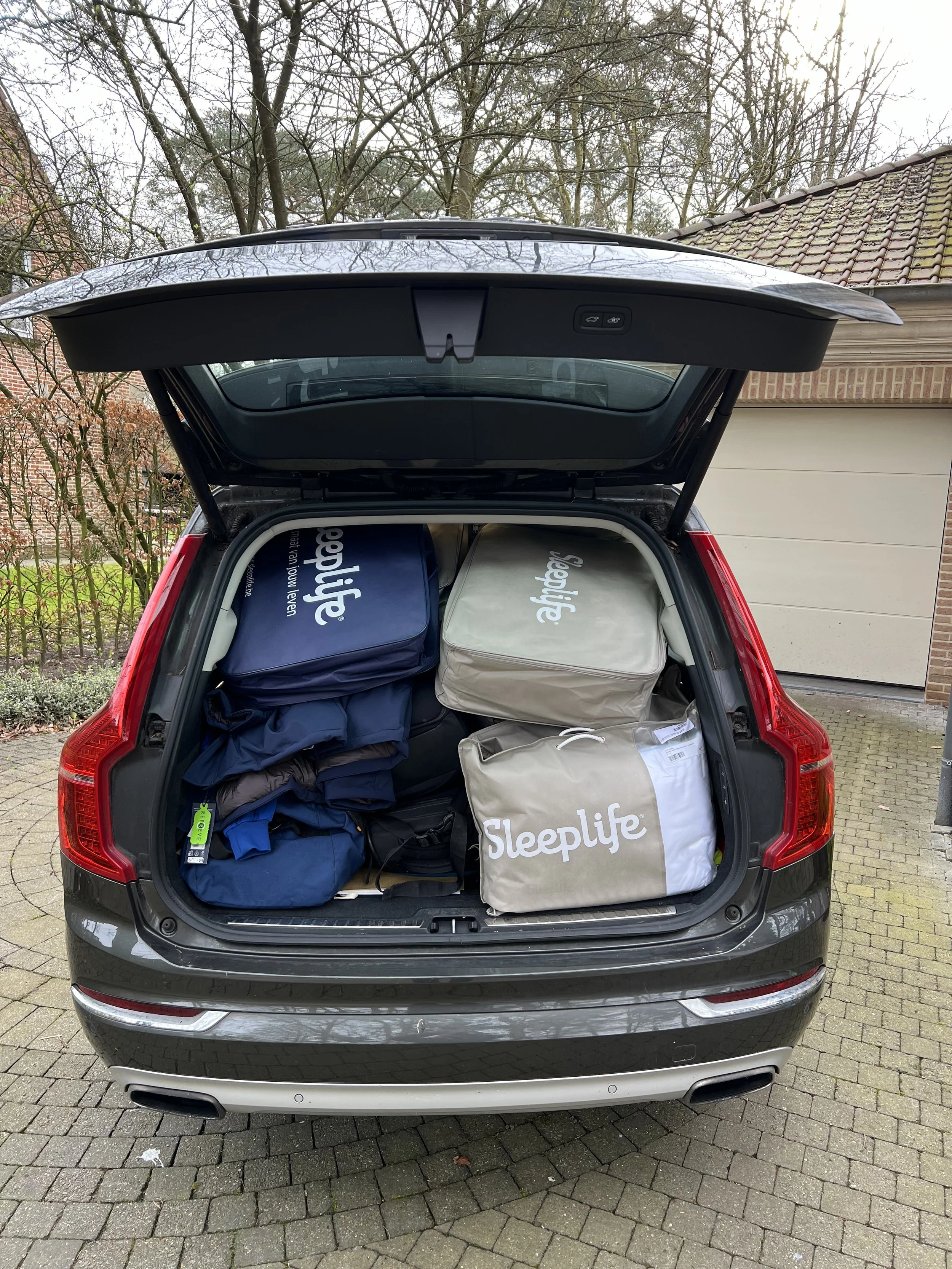 De weken voorafgaand aan de oplevering van het jacht hebben we de uitzet verzameld. Die ene keer dat we met de wagen tot bij de boot kunnen komen, moeten alle grote of zware stukken mee. Alles wat je niet met goed fatsoen kan meenemen op een vliegtuig. Volledig, moet deze inboedel ook zijn. Beddegoed van Sleepworld, serviesgoed van Ikea, poetsgerief en voedingswaren. Admiralty kaarten ook, bij Bogerd-Martin, zeilmateriaal bij Antwerp Nautical Center en zeilkledij bij Landtmeters.