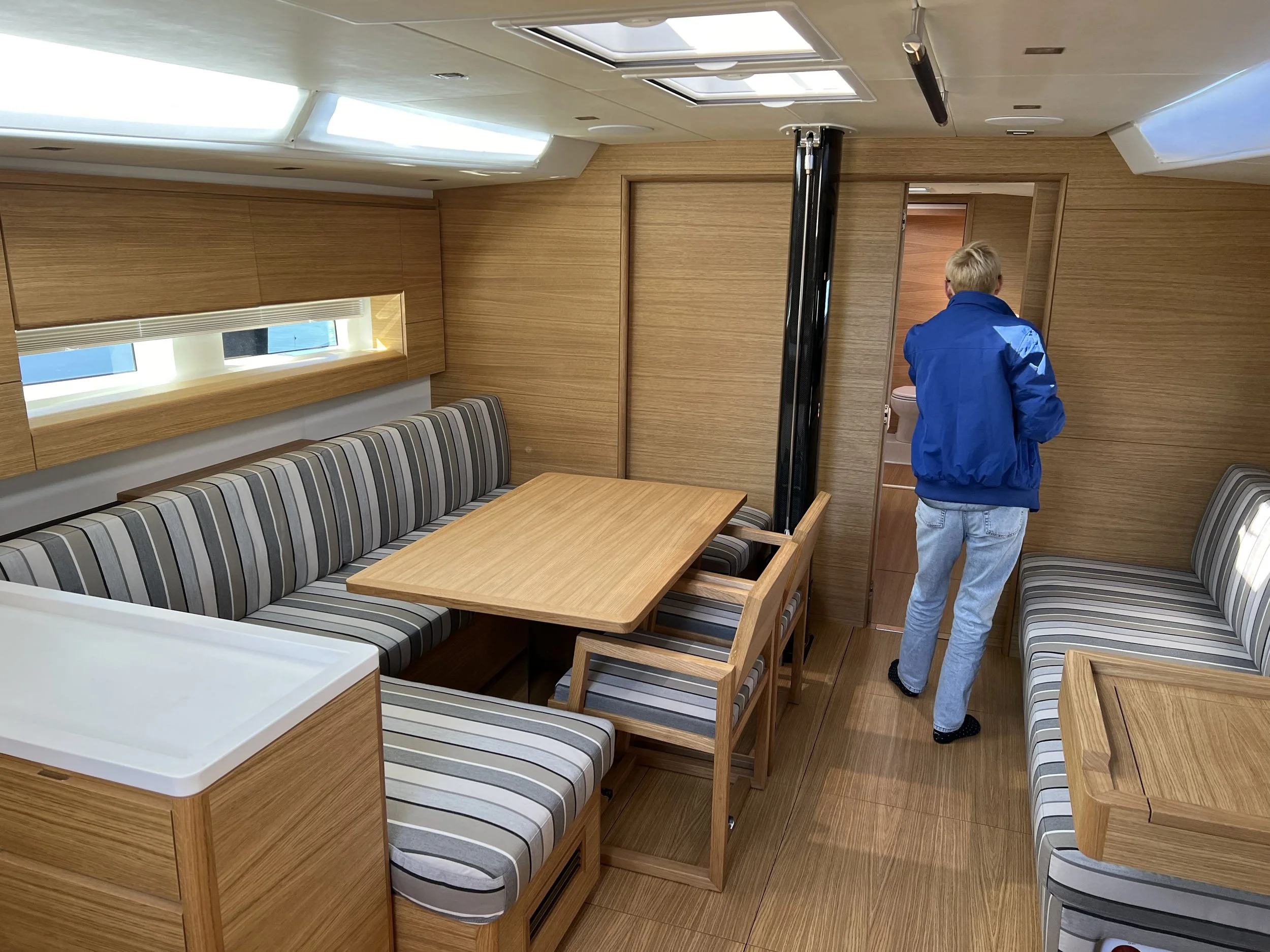 Alvast een eerste onoverkomelijke hindernis: de boot ligt twee meter van de kade en de enige passerelle in de buurt is loodzwaar. Na het opspannen van een spring met een geimproviseerde knoop, waardoor de boot wat dichter bij de kade komt, en met de hulp van een bereidwillige boatie, geraken we dan toch op de boot. Ook binnenin ziet hij er prachtig uit.