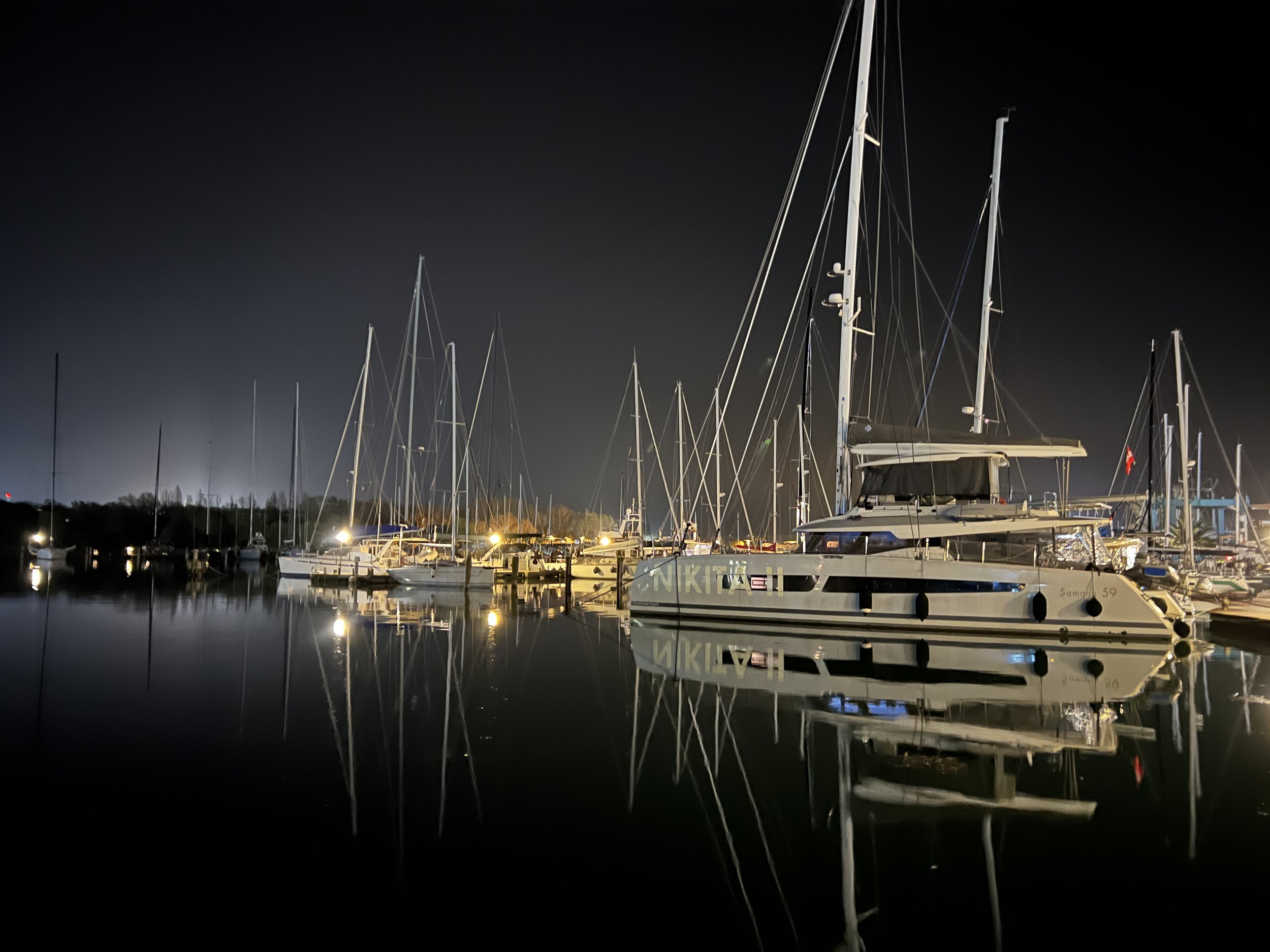 De enige directe vlucht van Brussel naar Trieste was een late, en landt zoals voorzien om 23u30. Na wat heen en weer geloop kunnen we dan toch beslag leggen op een taxi die ons rond 0u15 tot in Marina Nova, Monfalcone brengt.