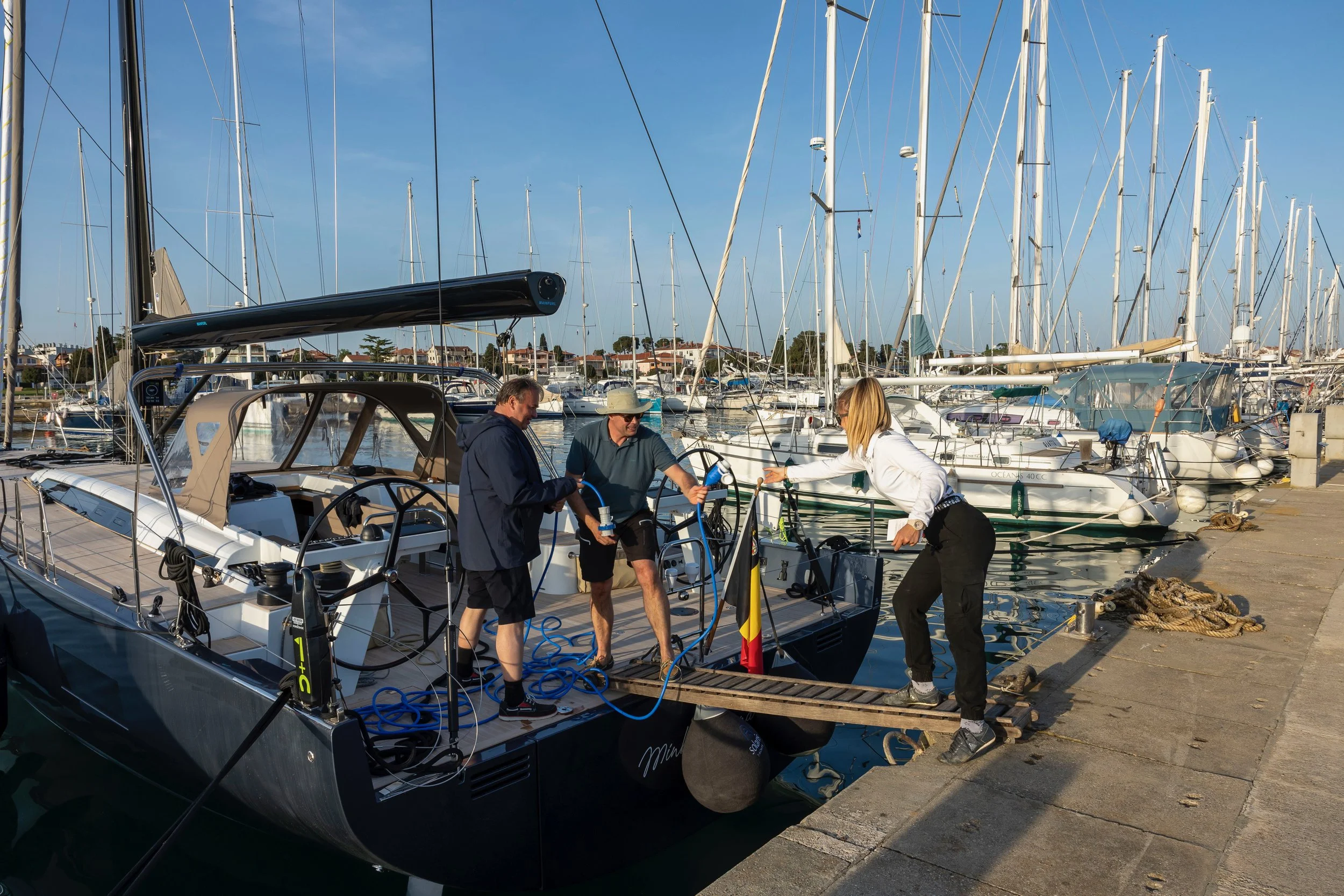 Zo gezegd, zo gedaan. Solaris versterkt het team met Agata en Francesco, u eerder reeds voorgesteld, en het testlijstje wordt afgewerkt. Zoals gebruikelijk duurt dat dan weer wat langer dan voorzien, en om wat tijd te winnen, stappen de begeleiders van Solaris aan het eind over op een zodiac van de marina, in plaats van het aanmeren in Marina Nova af te wachten. Zo begint onze tocht naar Kroatië op enigszins onverwachte wijze.