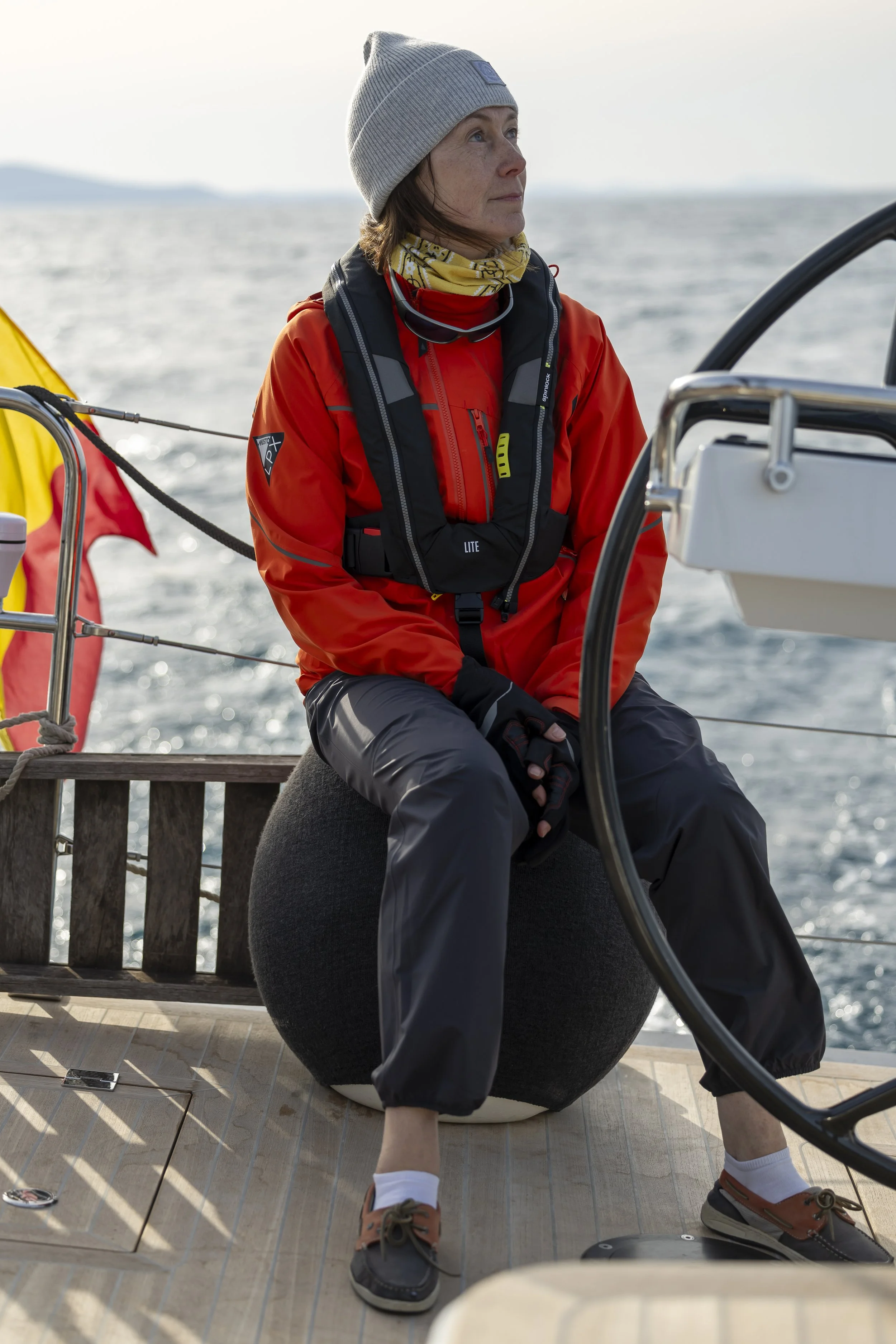 Het nieuwe model van de Solaris 50 heeft een eerder ongemakkelijke zitplaats aan de helm, gewoon een verbreding van de reling eigenlijk. De alternatieven die tot op heden werden voorgesteld als verbetering, bevallen ons niet, voornamelijk om esthetische redenen. Daphne bedenkt echter op haar eentje een valabel alternatief.