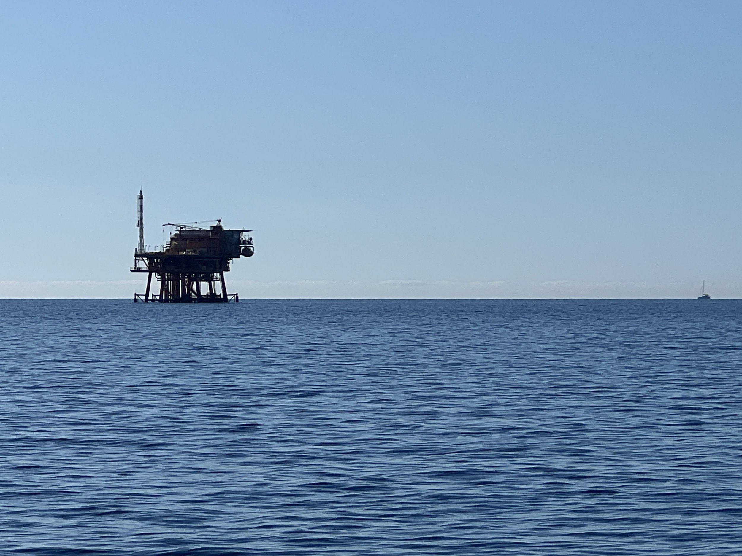 De volgende ochtend verlaten we Crotone, en vervolgen ons traject met nieuwe energie. We passeren enkele booreilanden voor de kust van Crotone.