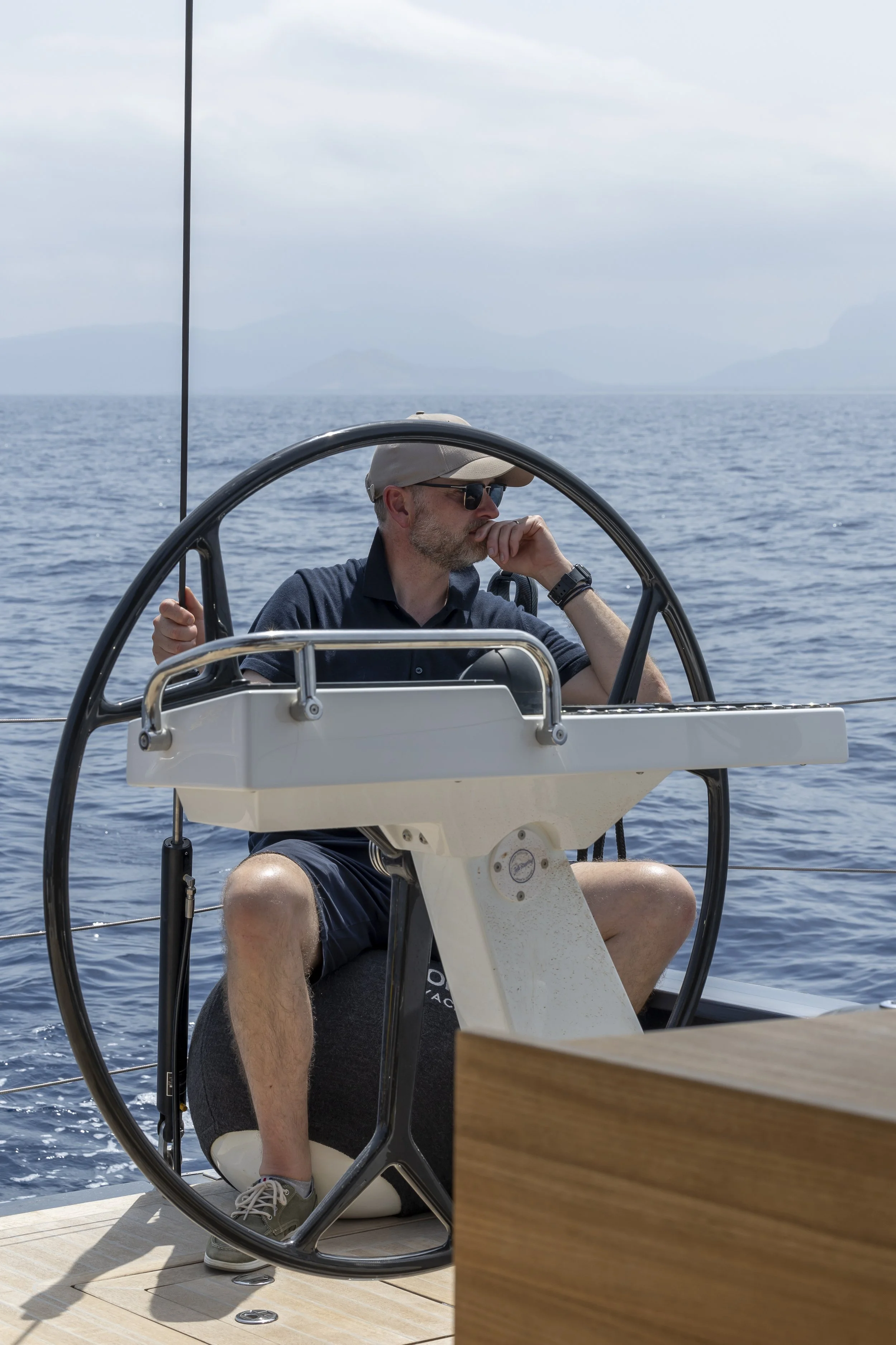 We varen met 8 kn tot 10 kn wind uit het zuidzuidoosten. Met een koers pal op Sardinië komt de wind te ruim. Met relatief weinig, onstabiele wind en de golven riskeren we een klapgijp. We varen daarom iets minder ruim, richting Corsica, met de intentie later te corrigeren, wanneer we kunnen gijpen, of beter wanneer de windrichting wijzigt. De boot haalt daarbij tussen de 5 kn en 6 kn. Dat is niet de snelste vaart, maar met een volle dag, een nacht, en weer een volle dag hebben we marge om dit te absorberen.