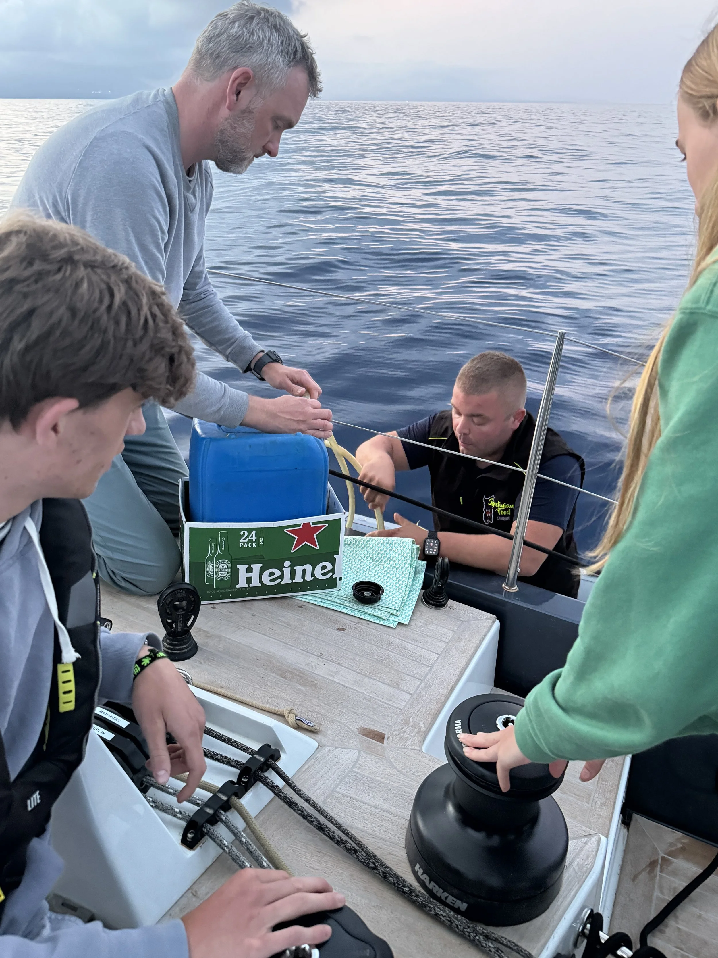 We herhalen het succes van de risotto uit Sterren en Dolfijnen. De wind valt grotendeels weg en verplicht ons weer op motor te gaan. We organiseren de wachtdienst, met een alternatieve pairing, en gaan de nacht in.