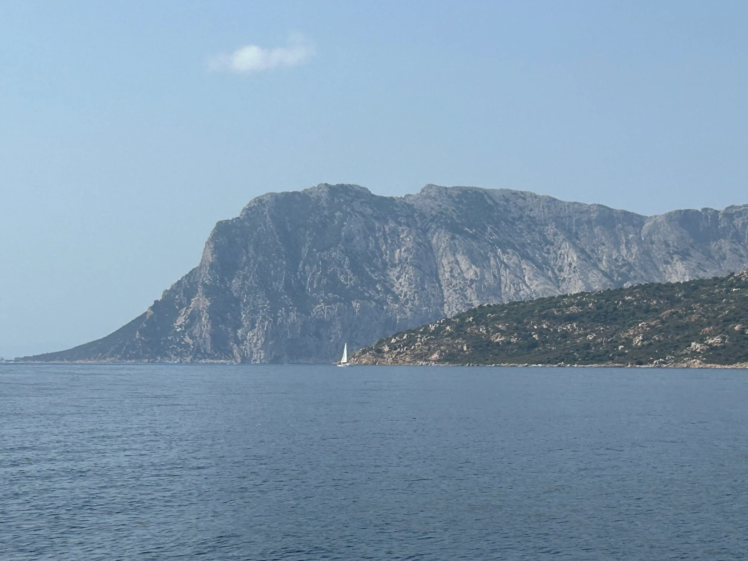 De klok tikt, dus na een uurtje is het weer inpakken geblazen en trekken we verder. We passeren Isola Tavolara, de Sardeense tafelberg. Tavolara is een lang, smal eiland met steile, kalkstenen kliffen, dat met z’n hoogte van 565m de horizon van het noordoosten van Sardinië domineert.