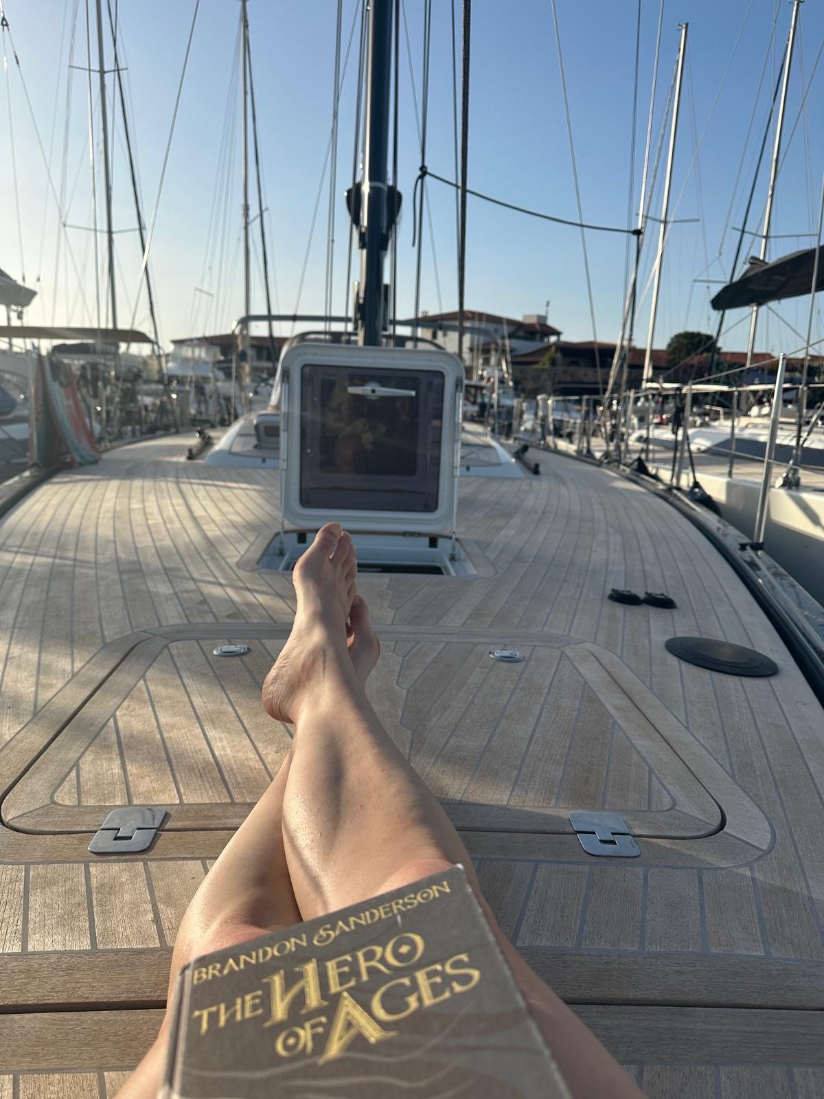 Marco fluistert ons nog toe dat dit type van furling boom relatief nieuw is, dat andere nieuwe boten er ook mee worstelen, en dat hij een service recall verwacht tijdens de winterperiode.
