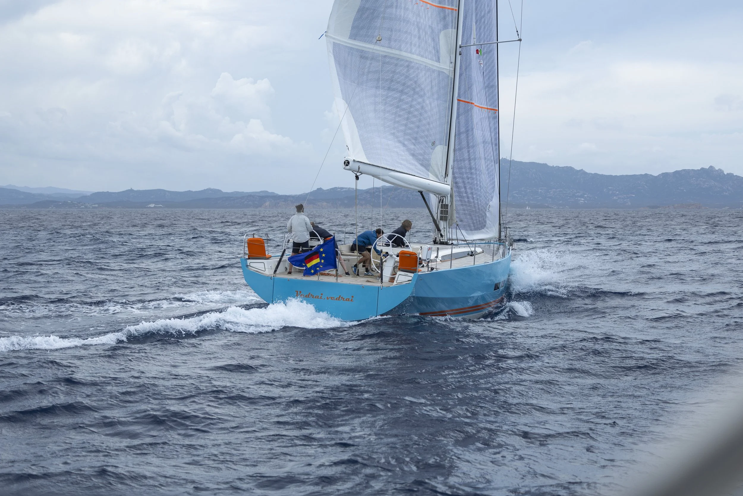 We ontmoeten de eigenaars van de Vedrai Vedrai, die we nog kennen van de Solaris Cup. Zij wijzen ons op de aankomende Mistral, met windsnelheden boven de 35 kn, en raden ons af dinsdag en woensdag de straat tussen Sardinië en Corsica over te steken.