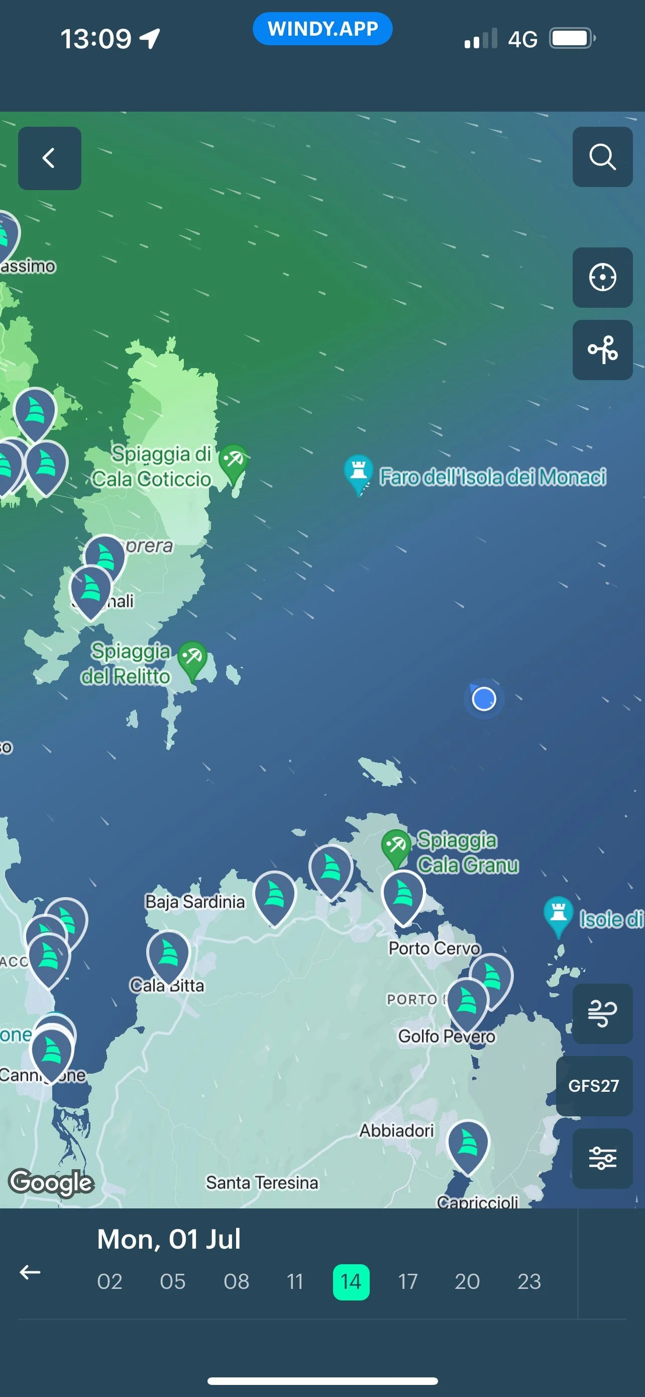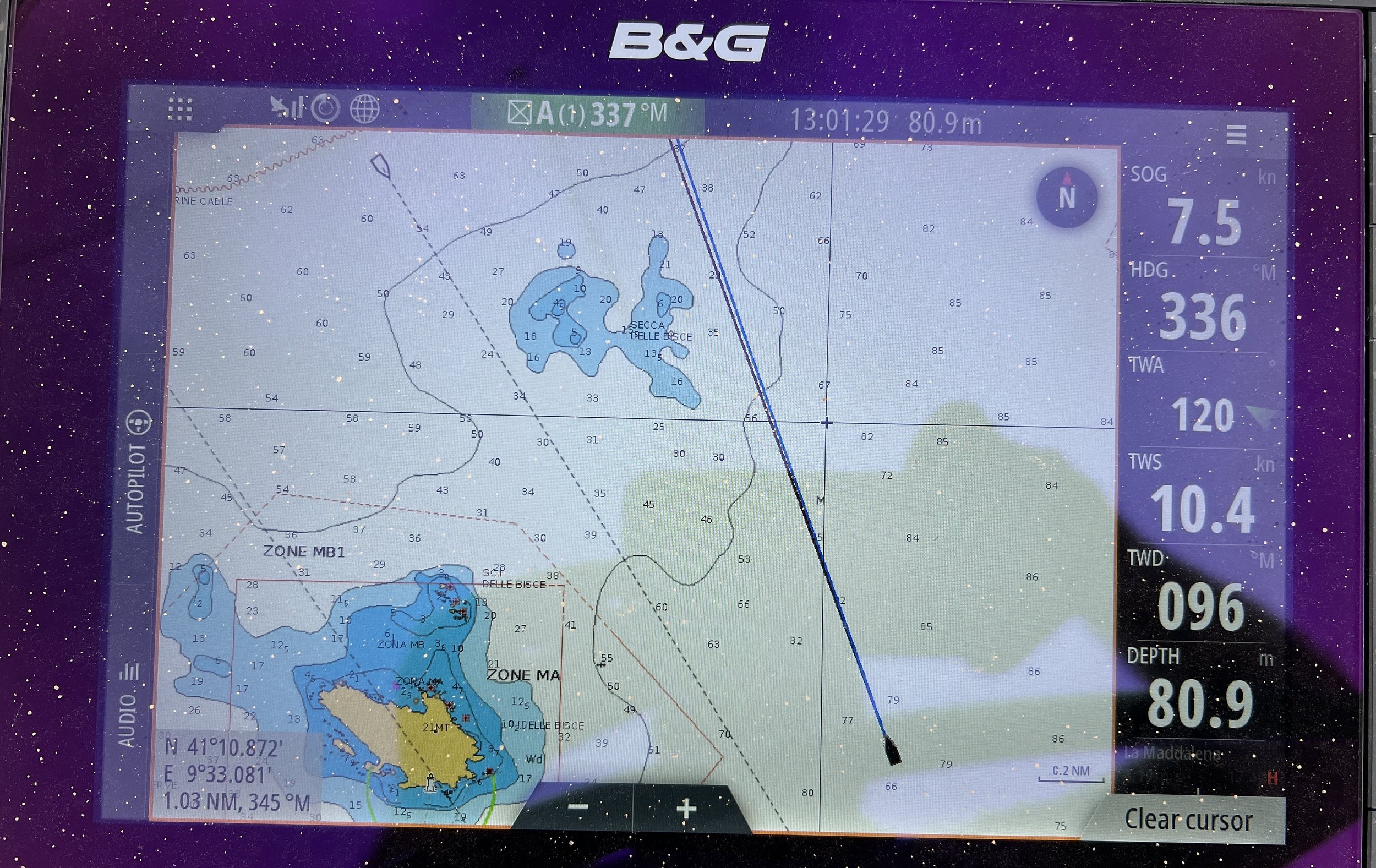 Daarna de herstellingen overlopen met Marco van de Yacht Service Club in Porto Rotondo, detailplanning van het traject, in functie van de voorspelde weersomstandigheden, wind in het bijzonder.