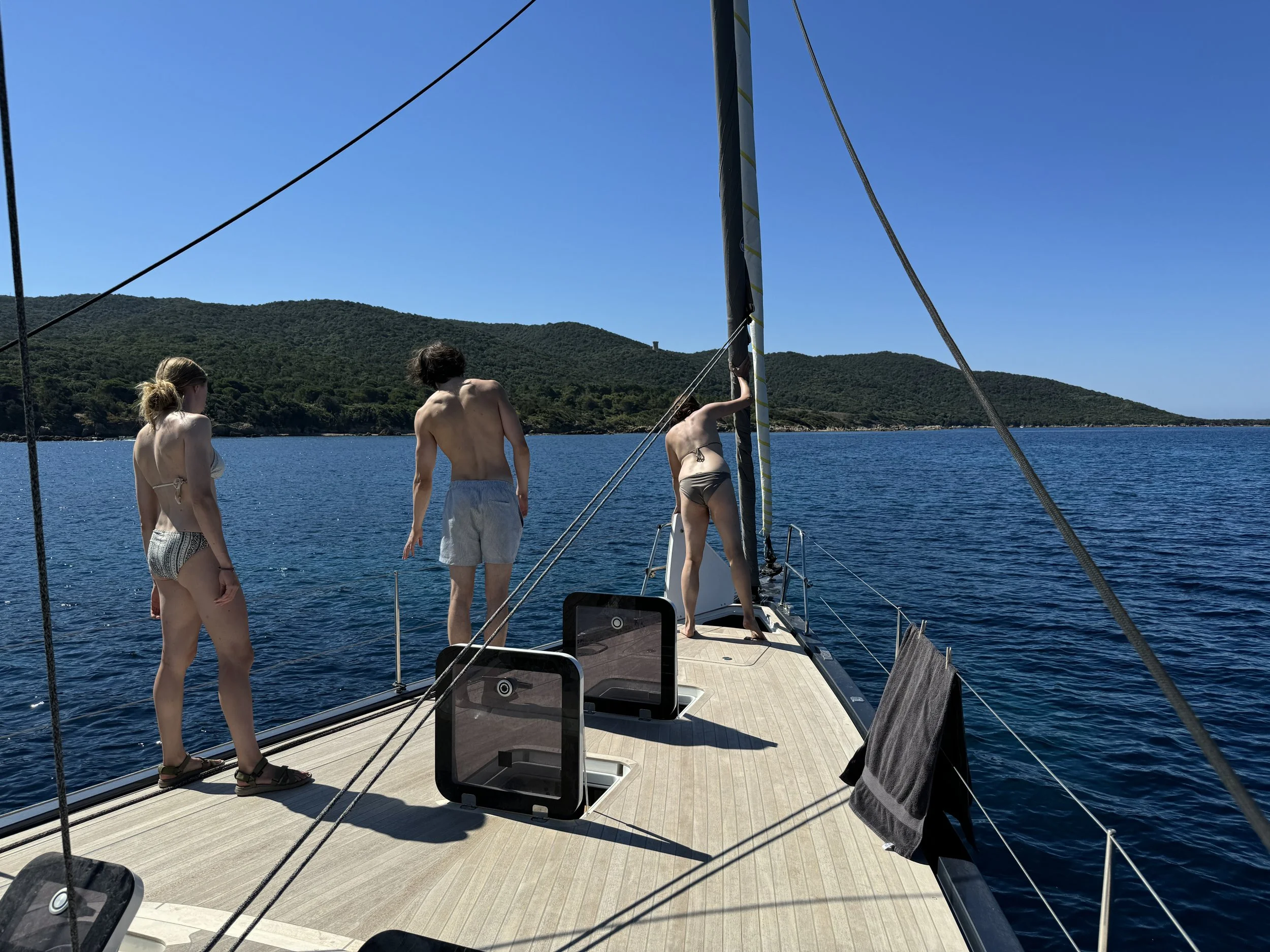 De volgende ochtend zijn we (relatief) vroeg op, ontbijt op de boot, en alles zeilklaar maken. We verlaten de haven van het prachtige Bonifacio rond 10u30, op weg naar Ergens.