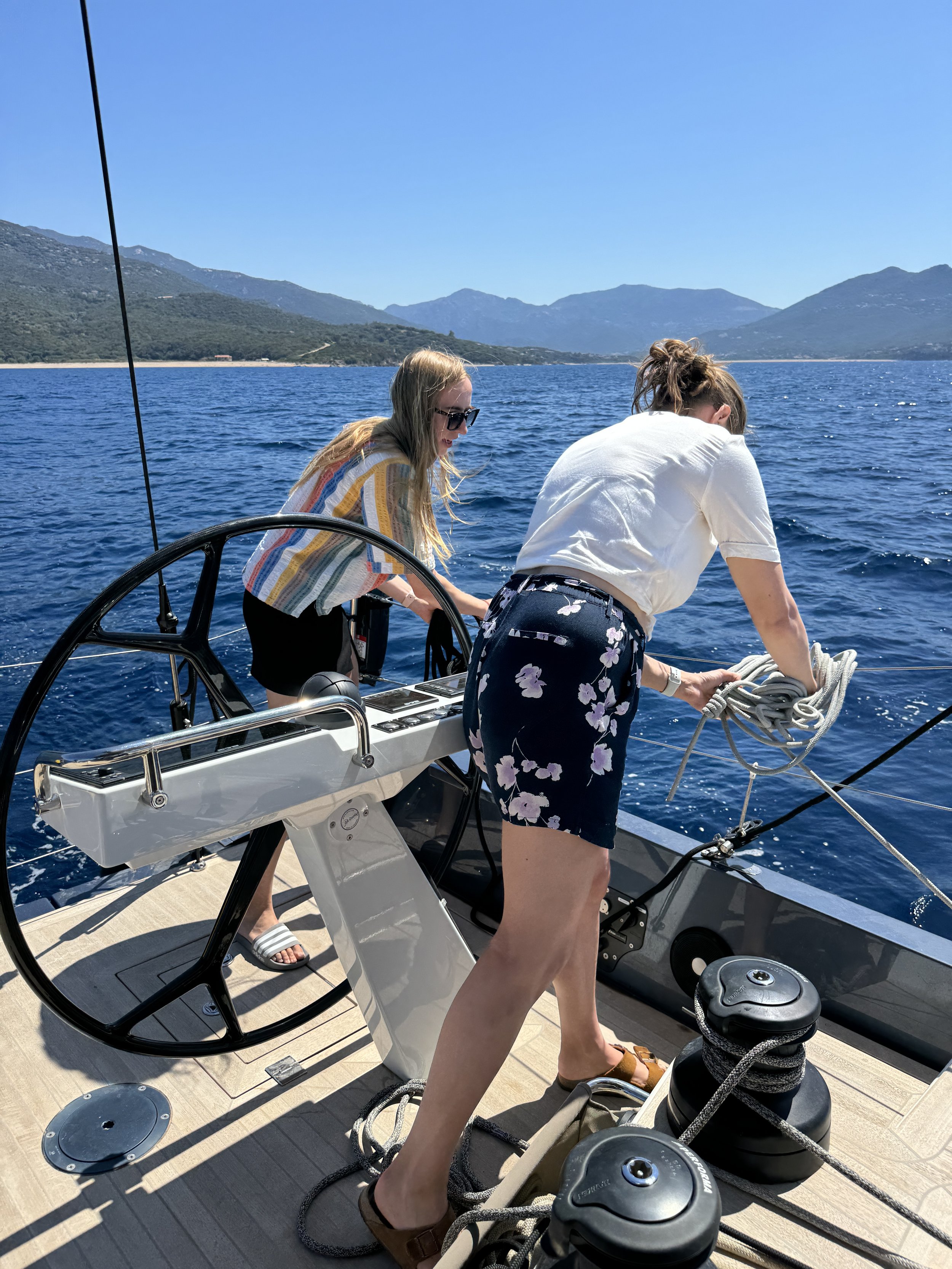 Het behoeft geen herhaling, de wind staat op kop. Al van ver in de baai van Propriano hijsen we de zeilen en begint het opkruisen. Een leuke zeilervaring, en een goede leerschool voor de crew.