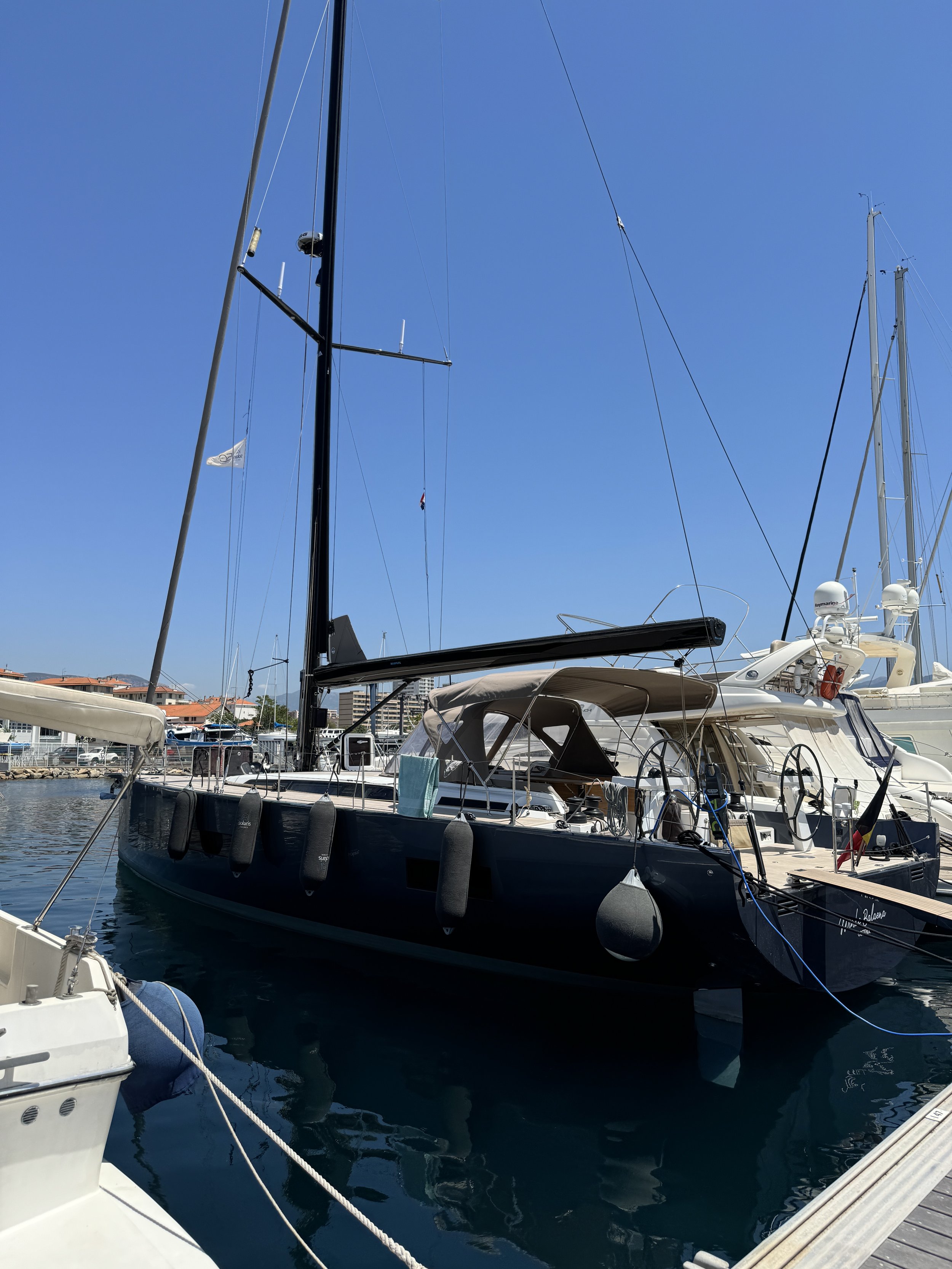 We krijgen van de capitainerie een plaatsje toegewezen naast de vaargeul, nog steeds op Mediterraanse wijze, zoals beschreven in De Vuurdoop. De ezel en de steen indachtig, ditmaal terug een foutloos manoeuver. Daarna is iedereen in de weer om de boot aan te meren.