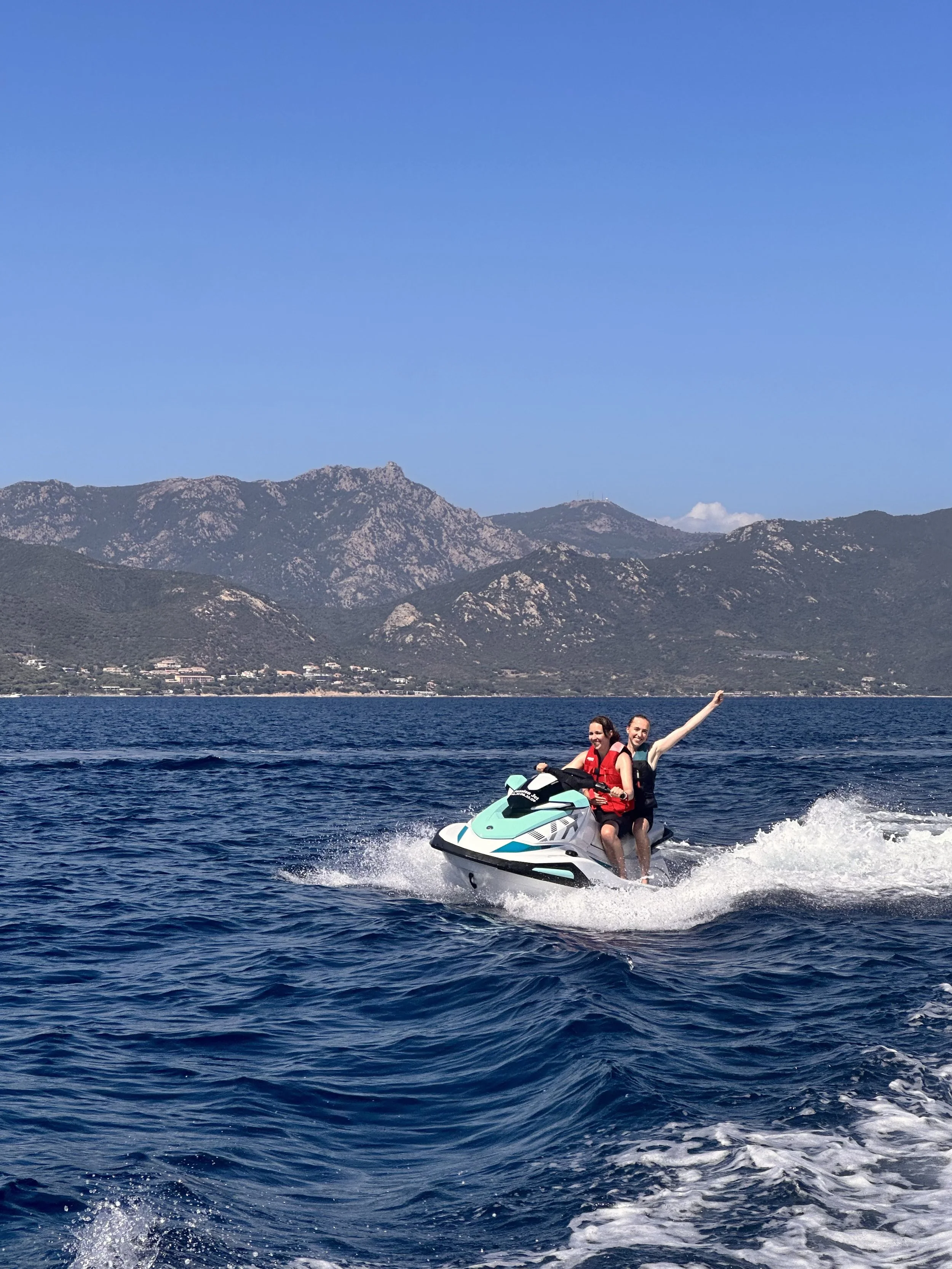 Als kers op de taart, je weet nog wel, huren we voor de kids enkele jetksi’s. De ganse namiddag schuimen ze op het water de wijde omgeving van Ajaccio af, met begeleiding.