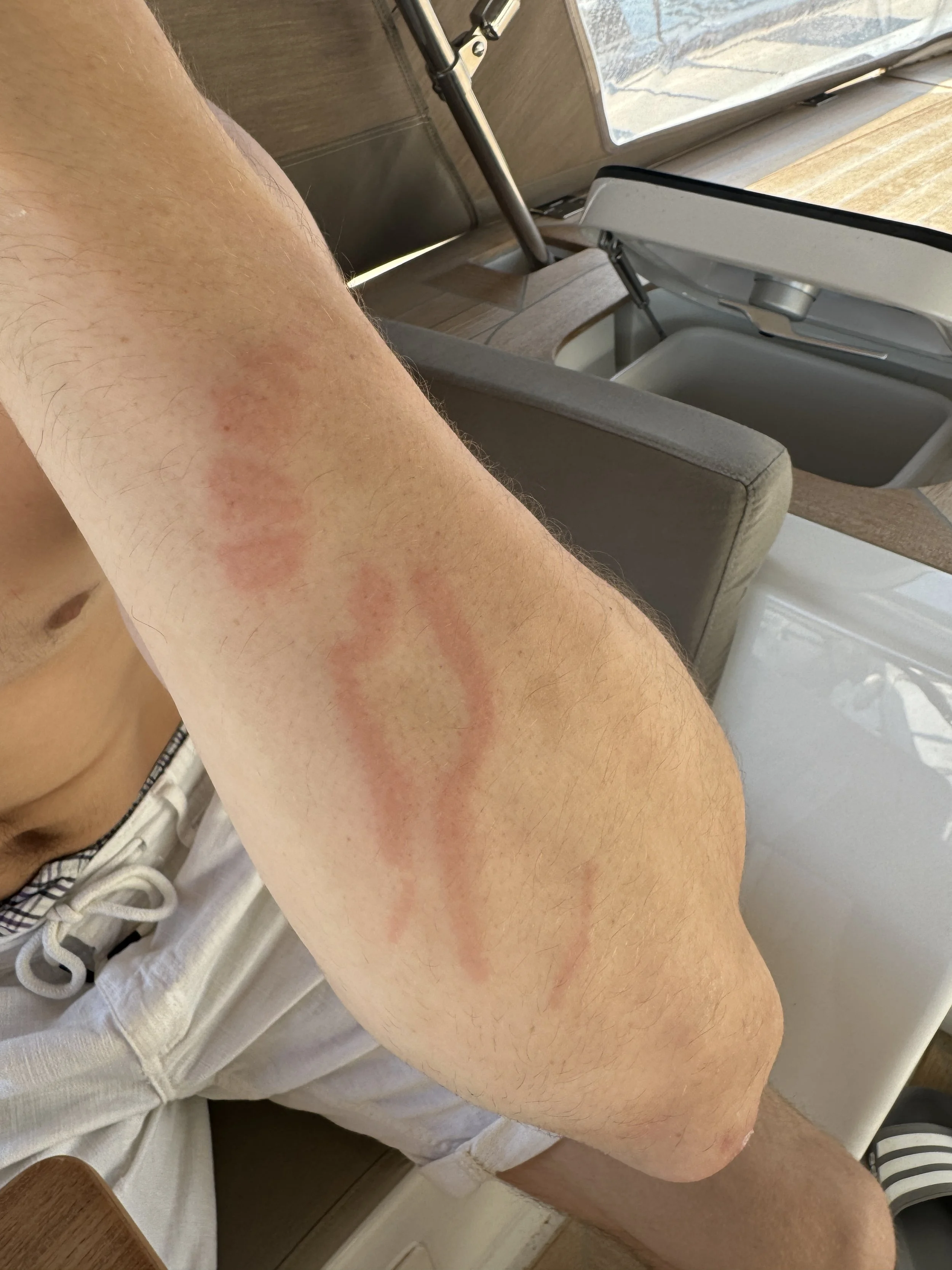 Robbe houdt er een nare tatoeage aan over na een close encounter met een kwal.