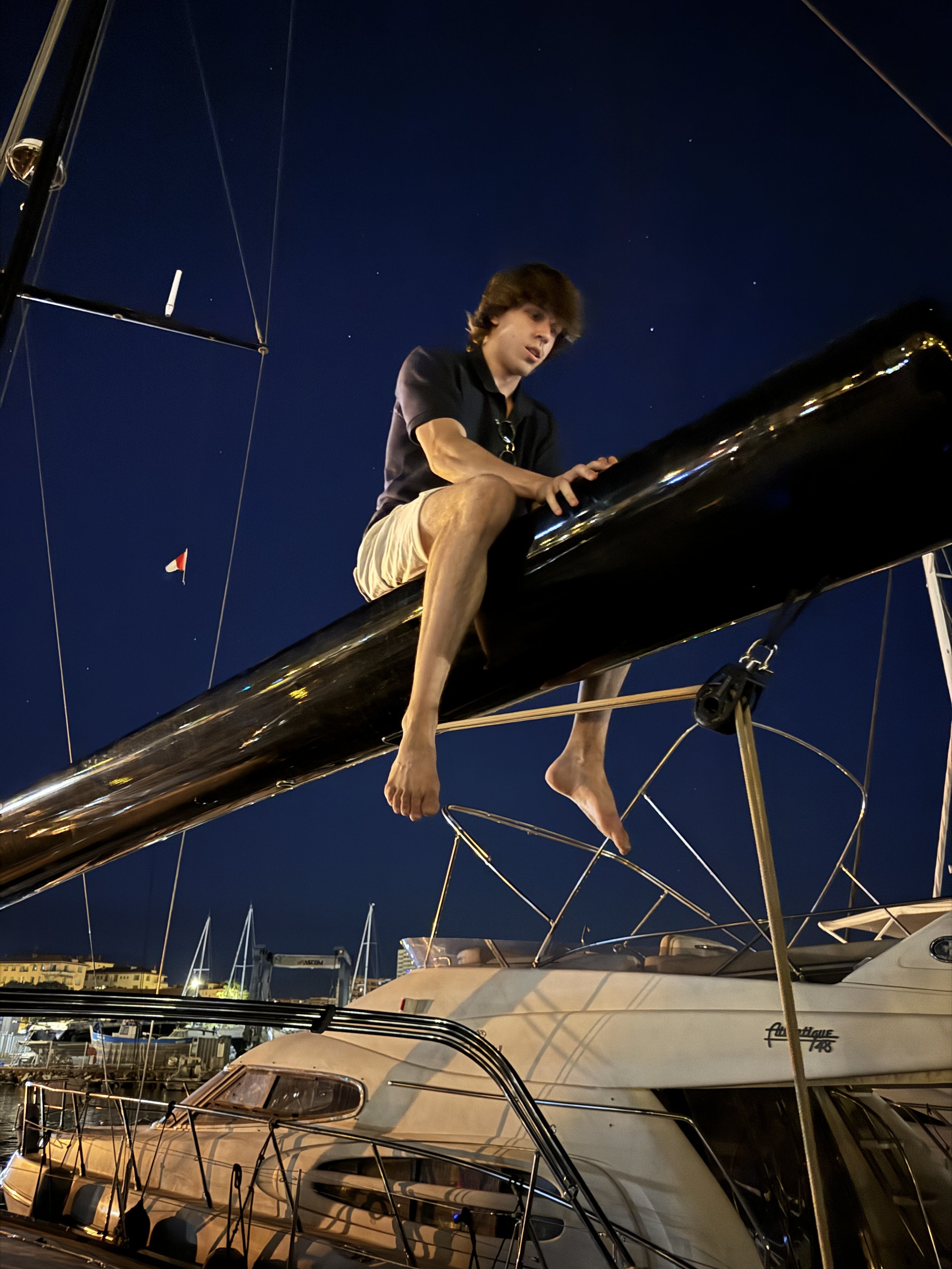 De avond wordt besteed aan het klaarmaken van de boot. Na een uitgebreide wasbeurt met de tuinslang, zowel van de boot als van de reizigers, worden de bimini en de stormkap afgetuigd en opgeborgen. Een Chinees vrijwilliger klimt op de giek om de bash van het grootzeil dicht te ritsen.