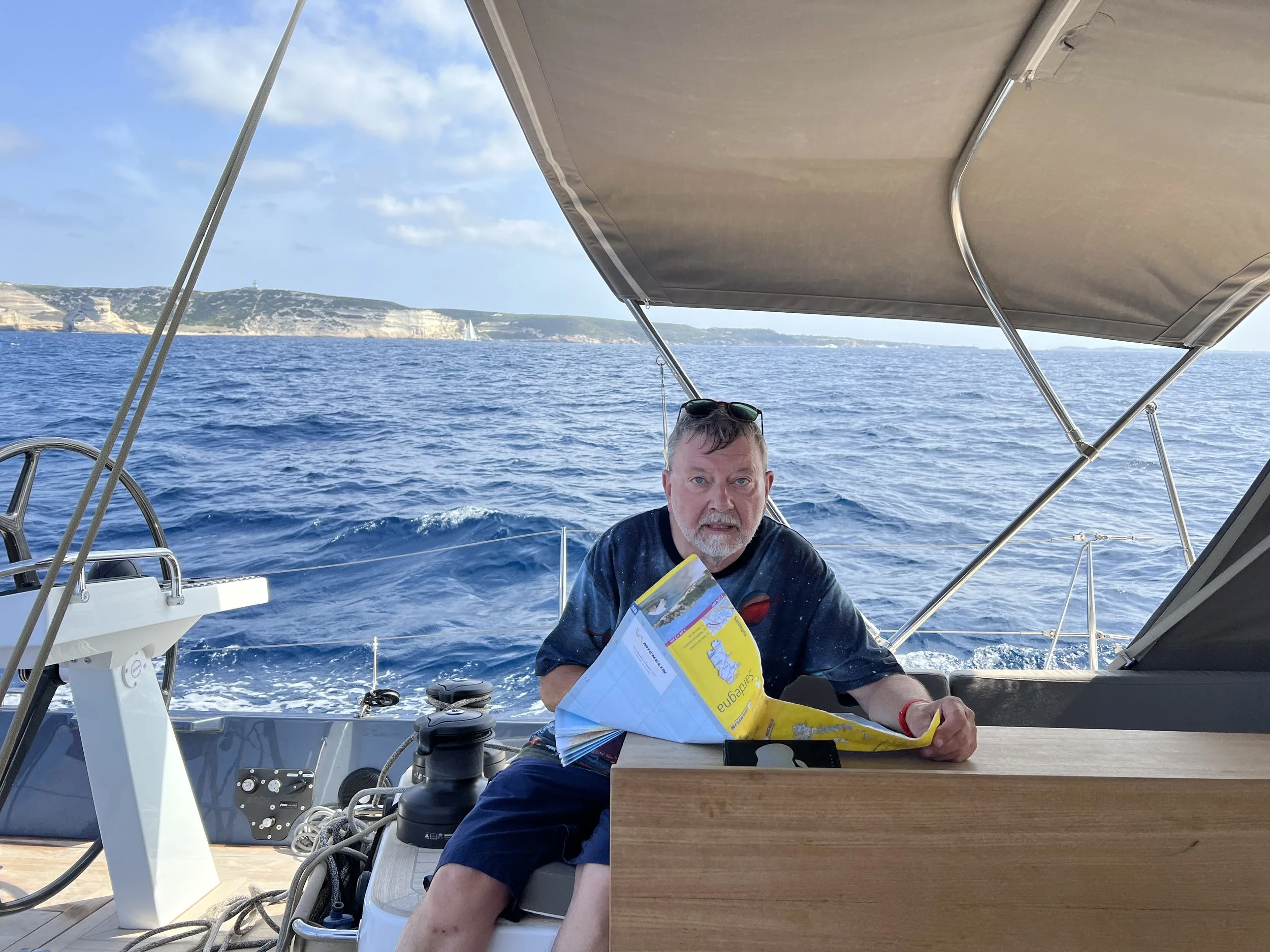 We varen maandagochtend uit, vooreerst om poolshoogte te nemen van de toestand op zee in de golf van Bonifacio, met het voornemen door te varen als de omstandigheden het toelaten, maar terug te keren bij de eerste tekenen van zeeziekte.