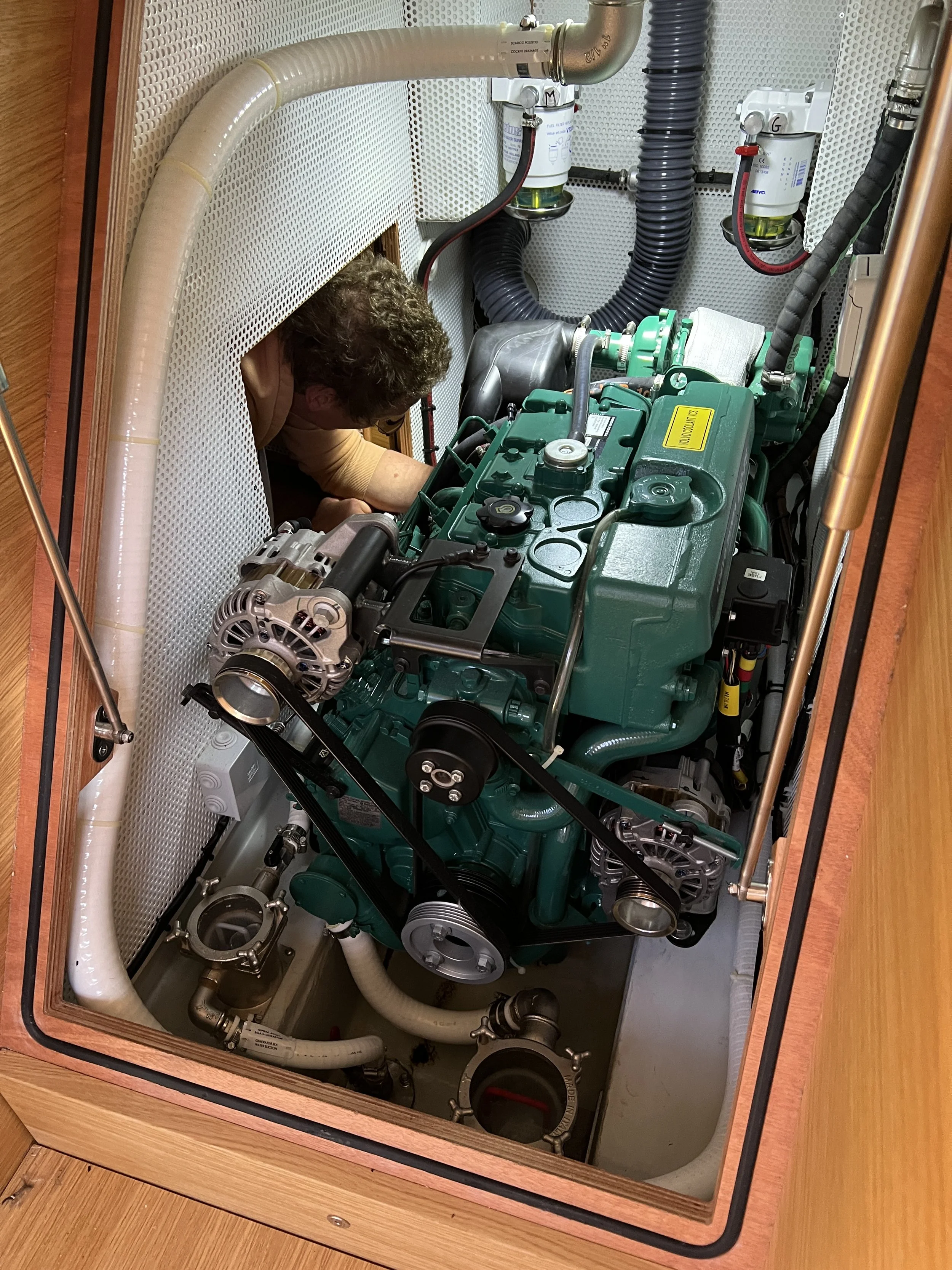 Als een goed huisvader stelt Benoit voor de motor te controleren.