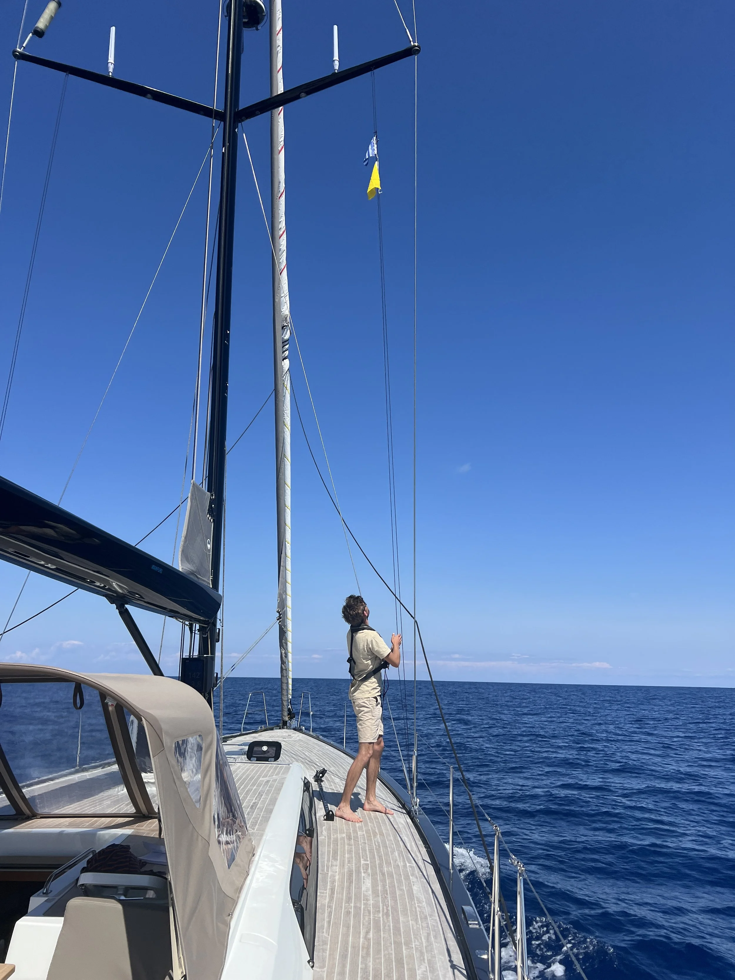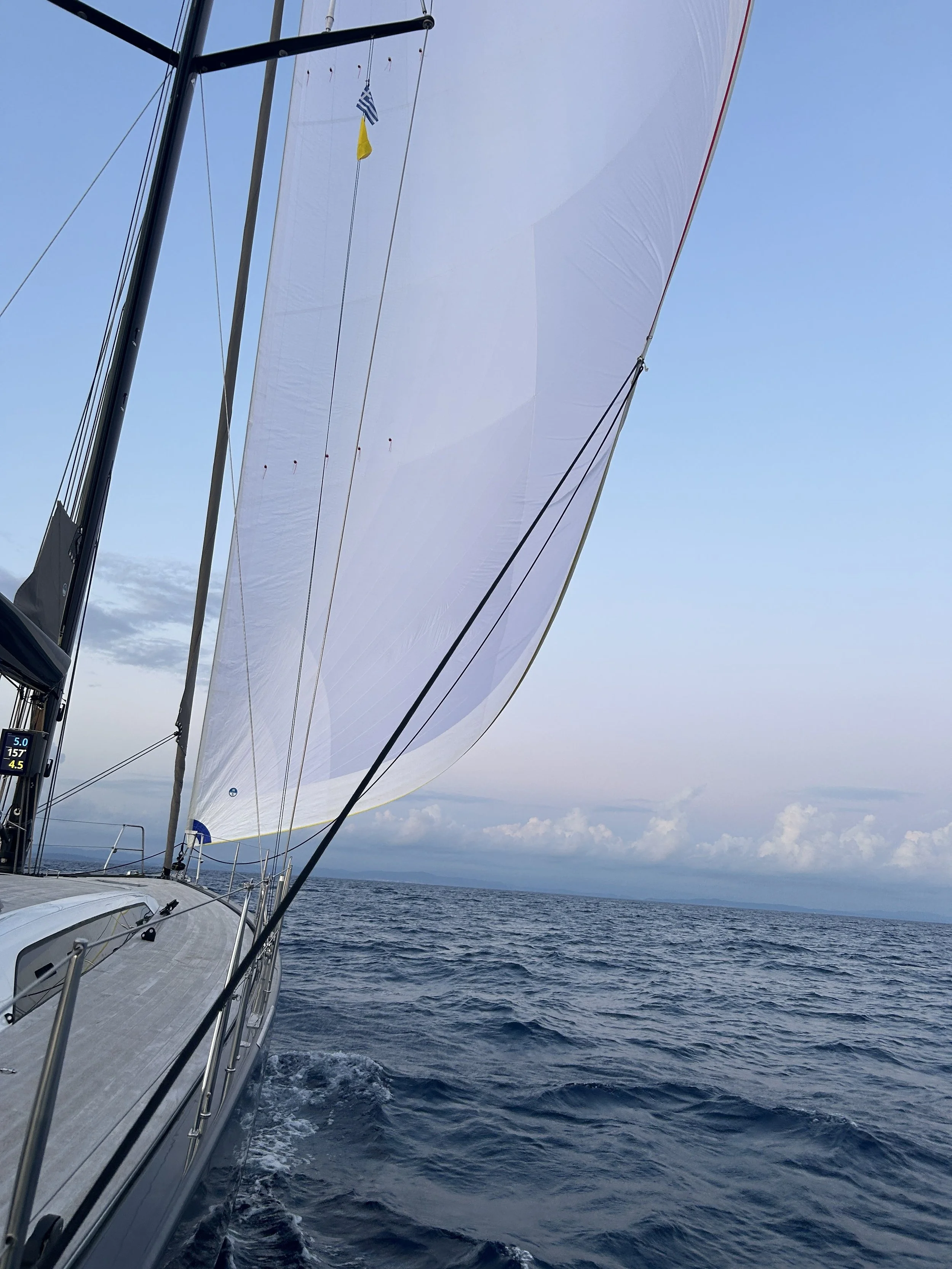 Over het langste non-stop traject tot op heden, met te weinig wind, kabbelend op zee, in rechte lijn van Riposto naar Katakolon.