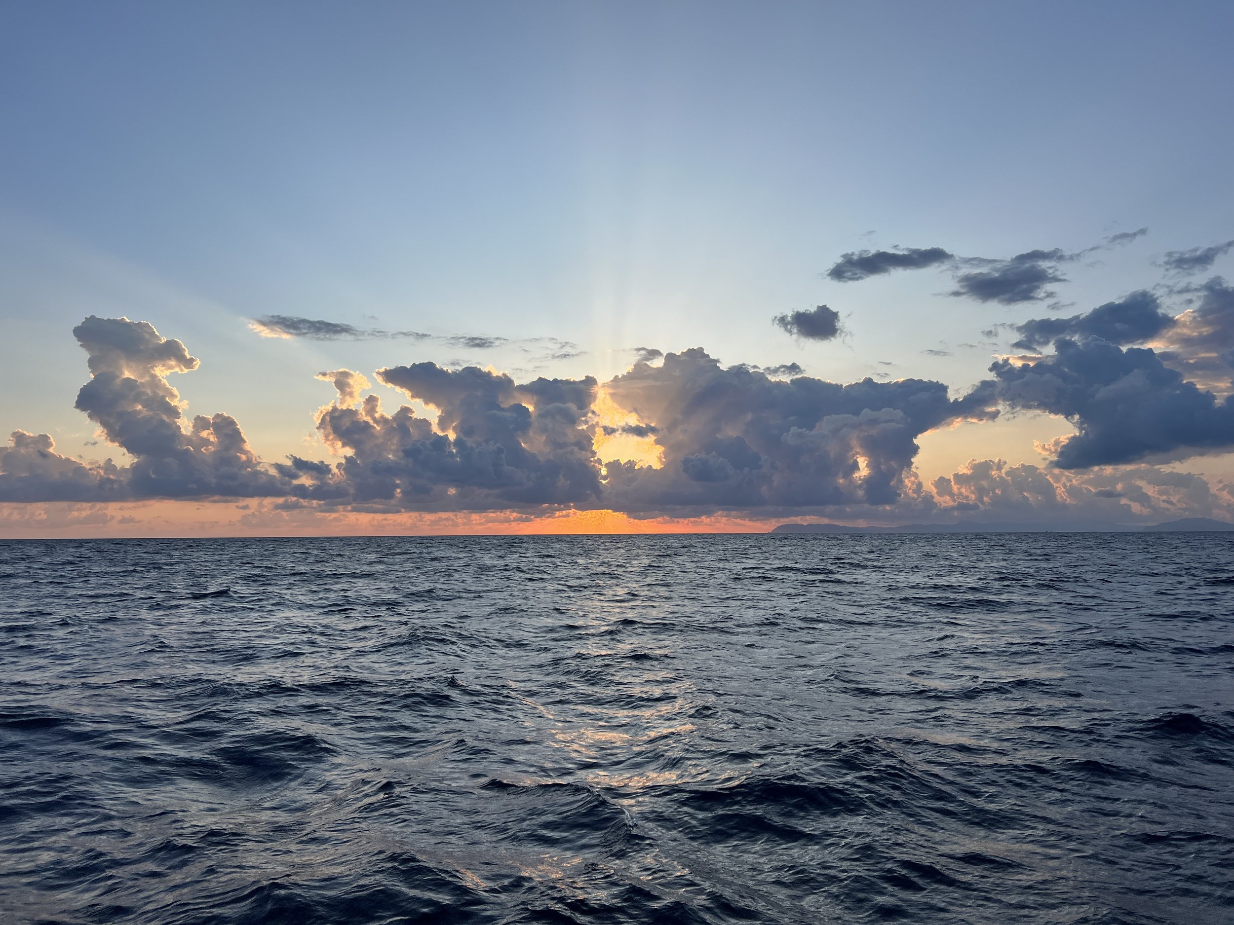 Over de verschillende dagen op de Ionische zee worden we steevast getracteerd op een iconische zonsondergang. Enkele plaatjes om het sfeerbeeld kracht bij te zetten.