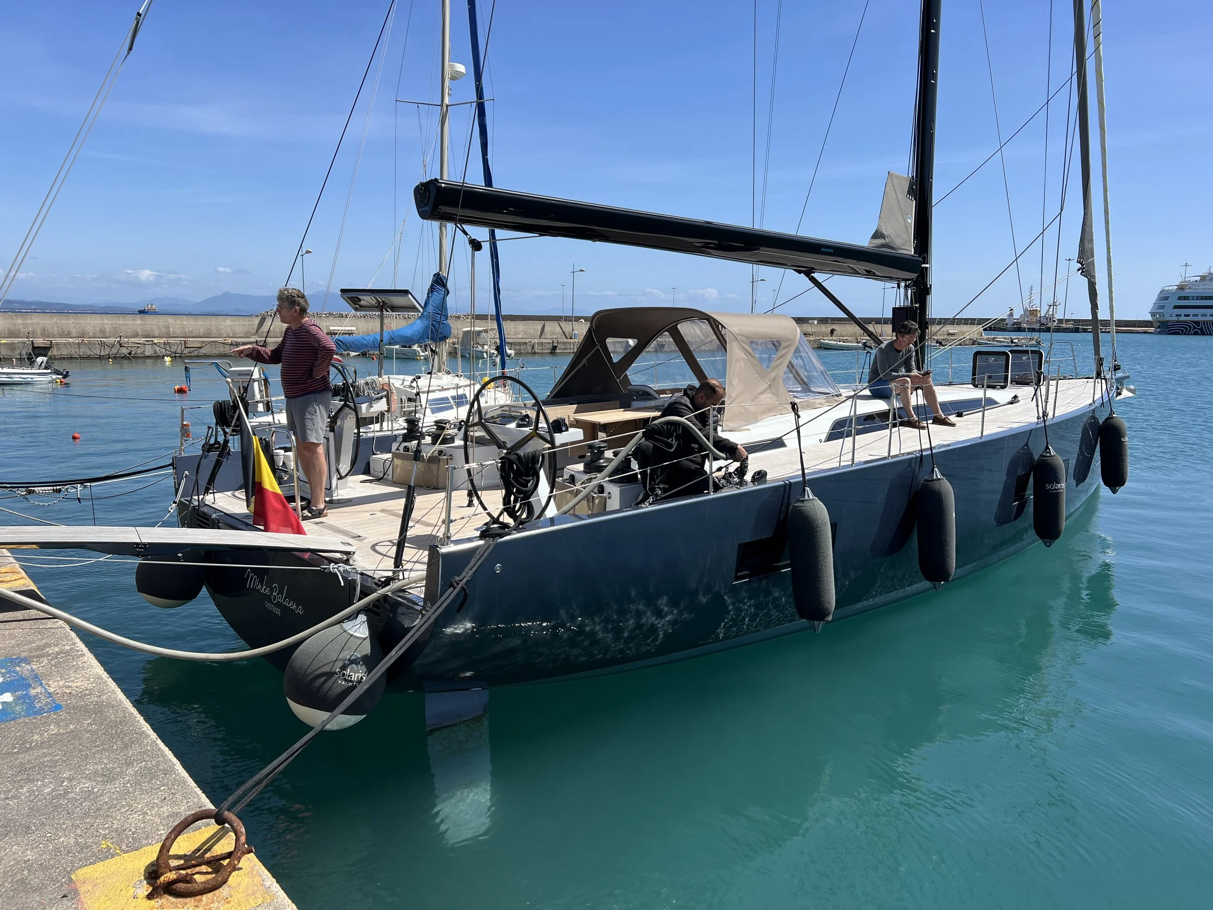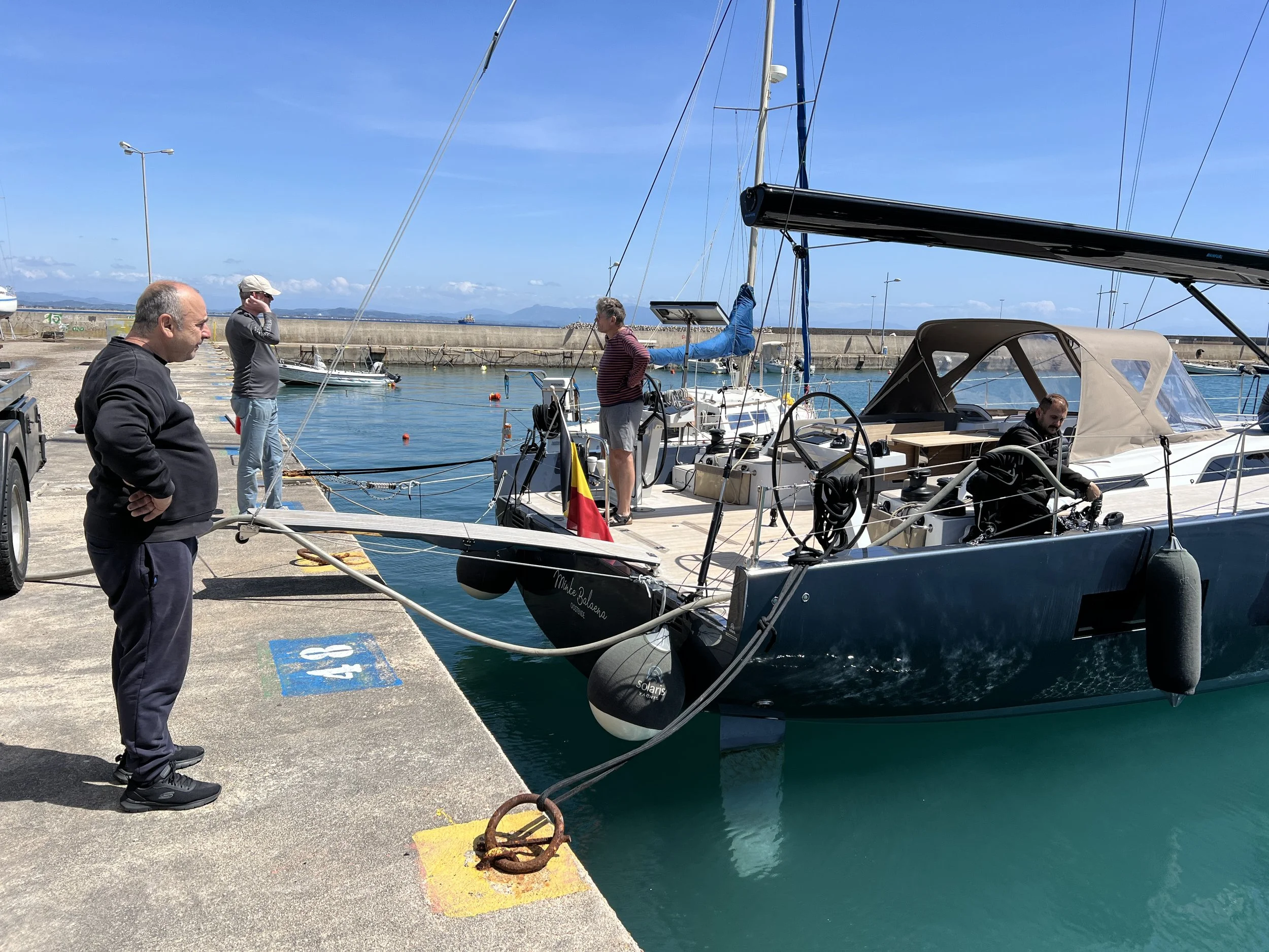 Op zoek naar een ontbijt passeren we een zeilboot met skipper. De man is hotelier in les Alpes-Maritime, vertelt hij. Hij lijkt vergezeld door zijn zoon, als tweede bemanningslid, maar dat blijkt de chef van het hotel te zijn. De man is erg behulpzaam, geeft aan hoe we brandstof kunnen bekomen, en verwittigt via een lokale vriend de havenmeester.