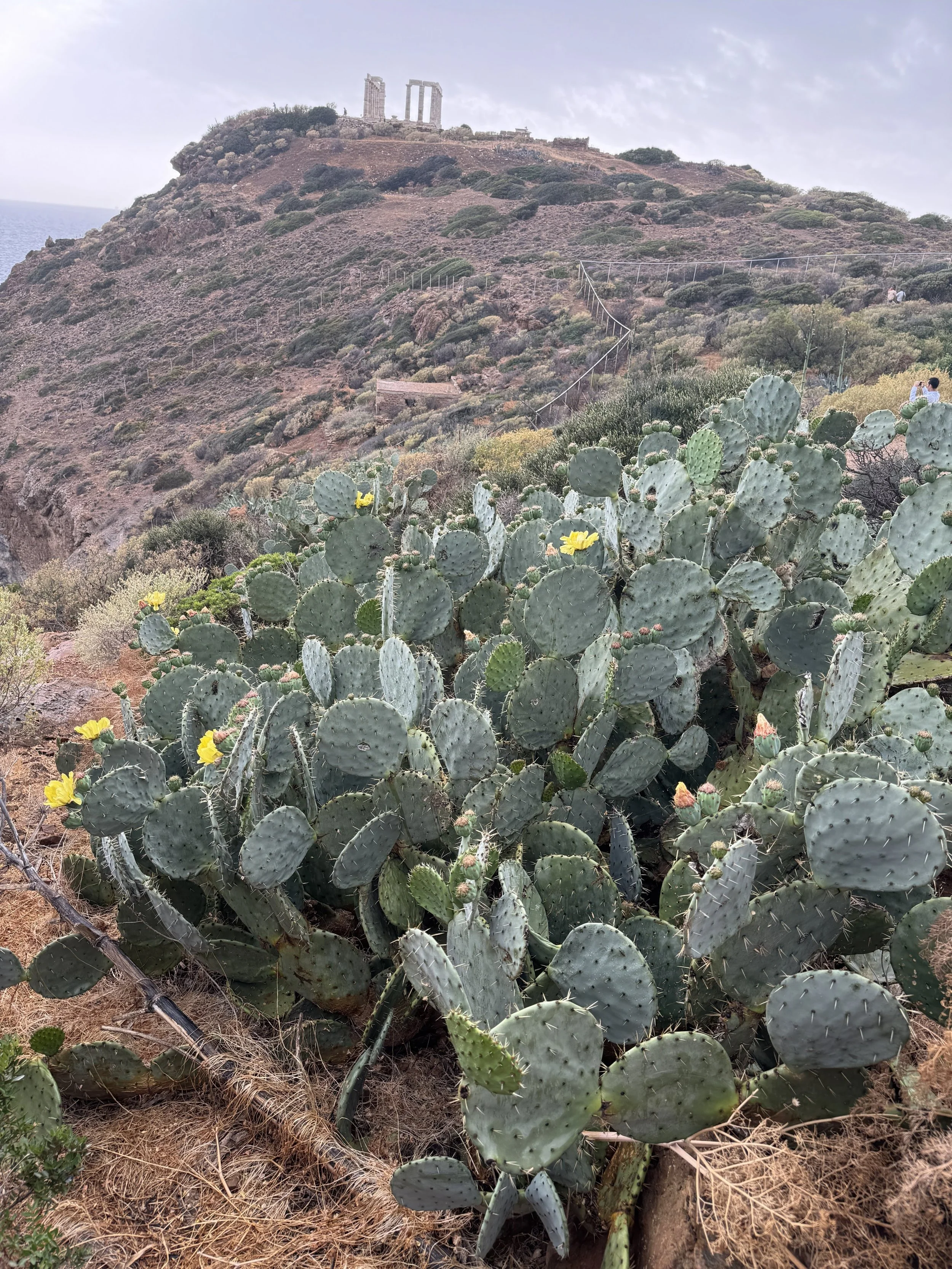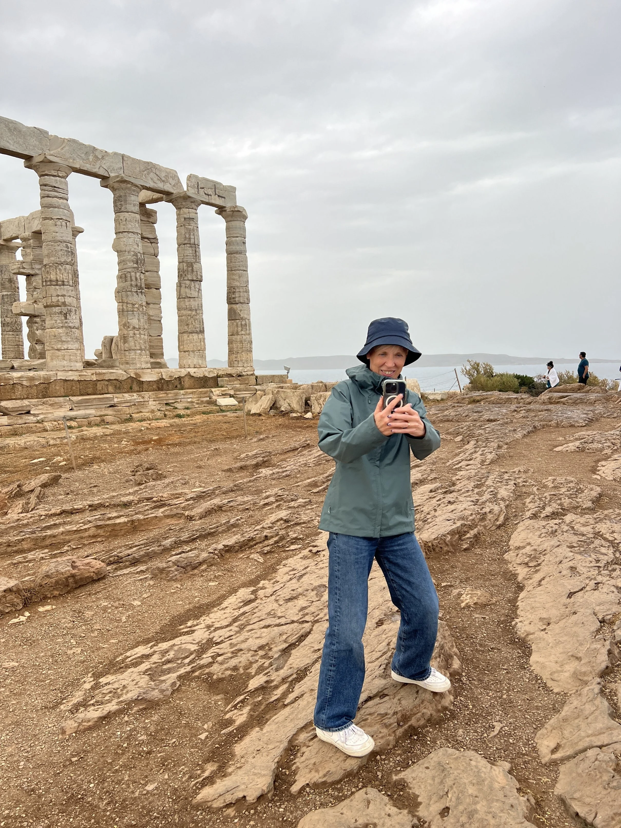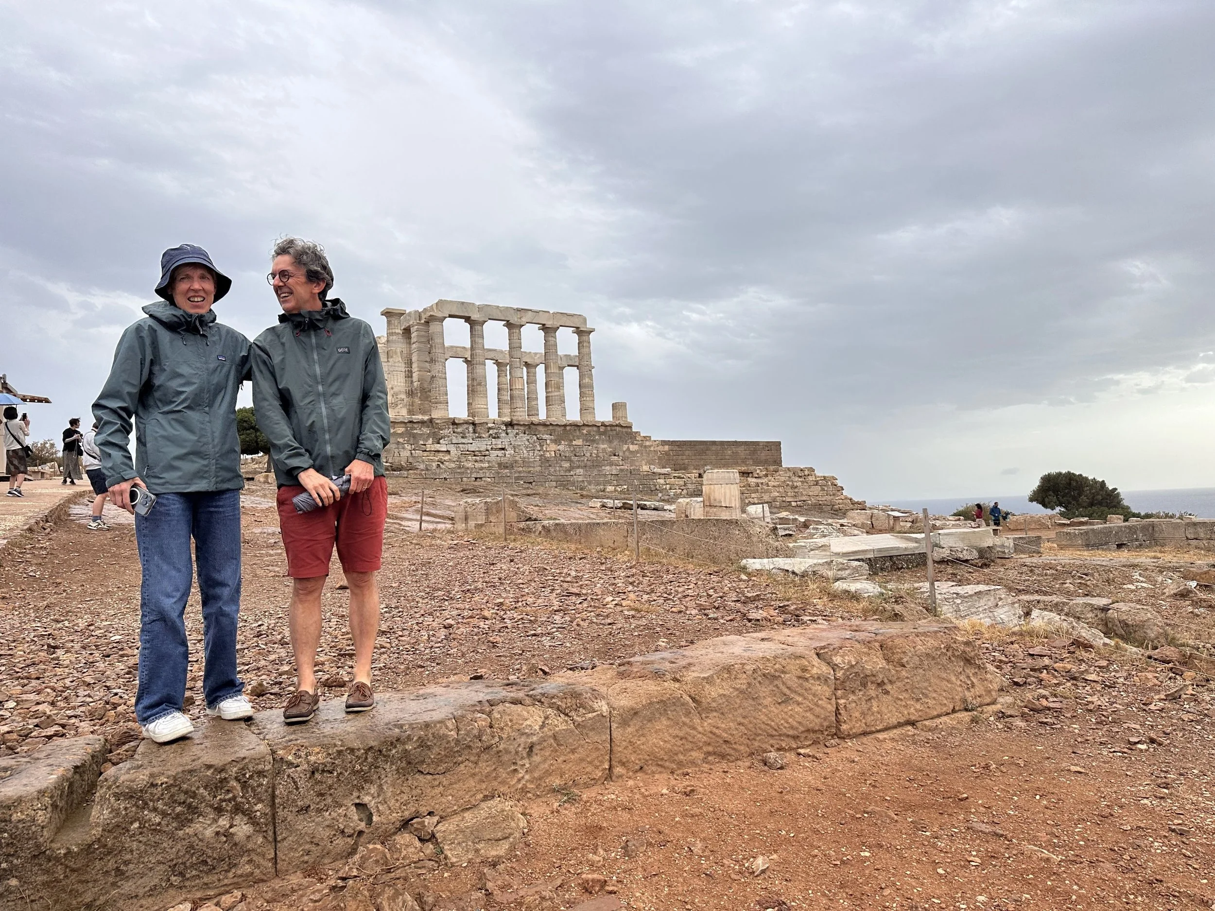 We brengen daarom een bezoekje aan de tempel van Poseidon, die we vroeger al zagen Tussen Zon en Zeil, maar ditmaal via het land.