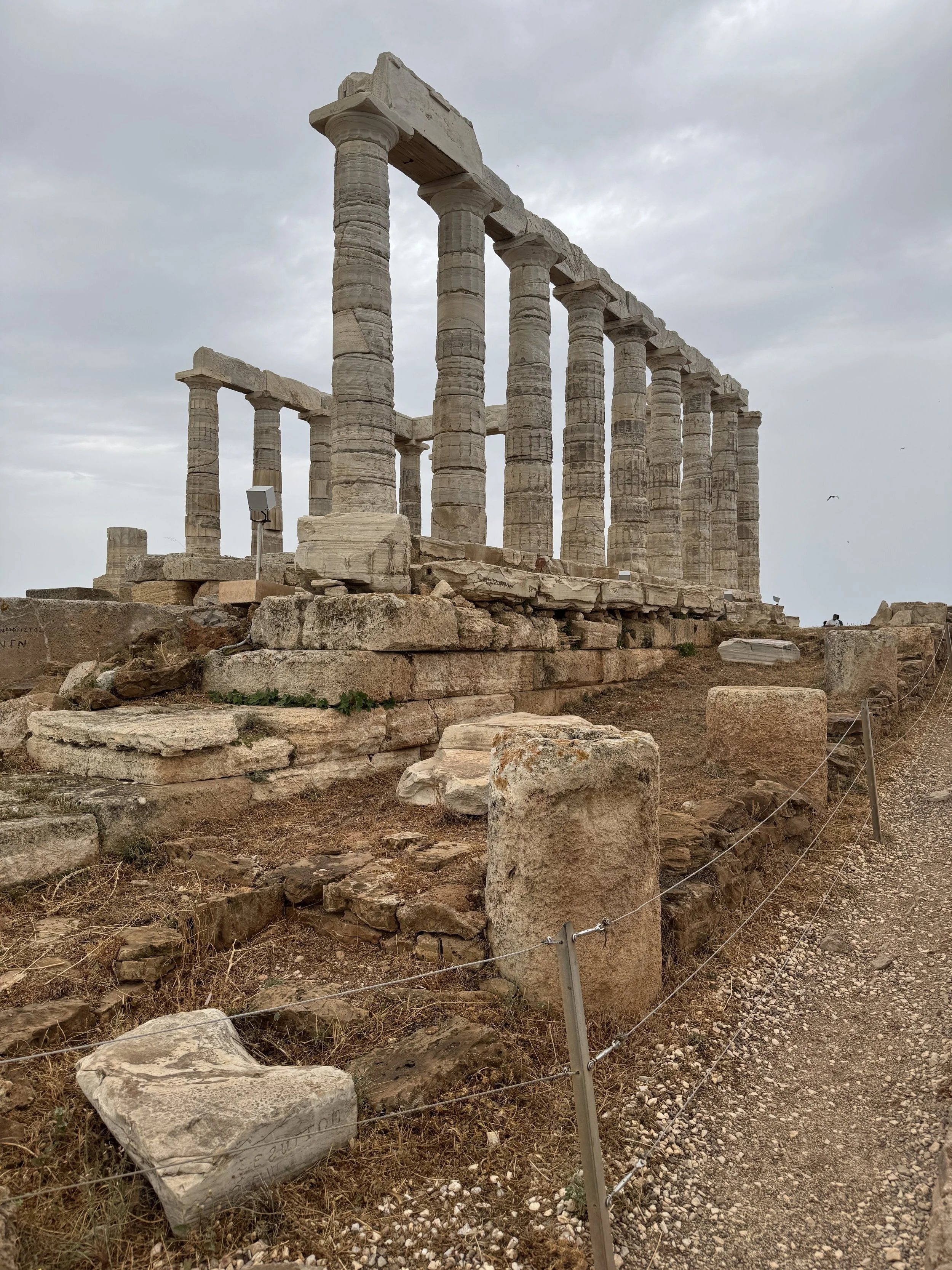 De tempel van Poseidon werd gebouwd in 444 voor Christus, tijdens de gouden eeuw van Athene. Hij bevindt zich op kaap Sounion, het zuidpunt van het schiereiland Attica, een strategisch uitzichtpunt over de Egeïsche Zee. Hij is gewijd aan Poseidon, god van de zee, om zeelieden te beschermen en de maritieme macht van Athene te bekrachtigen.