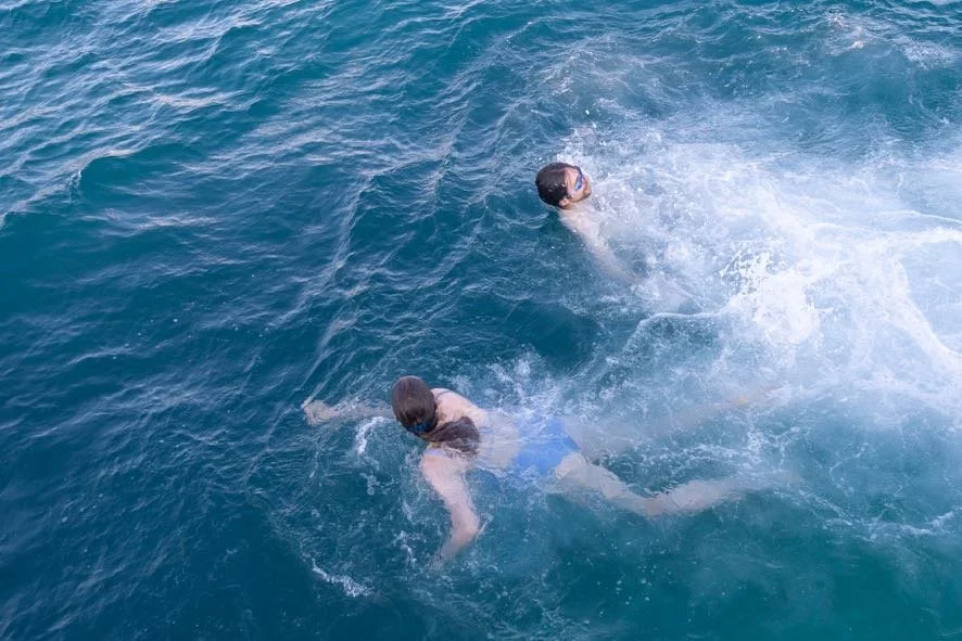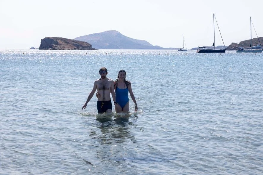 Met voorbedachte rade heeft iedereen z’n zwempak al aan. En gezwommen wordt er. We brengen de namiddag door op het strand, in de zee en in een plaatselijk strandcafé.