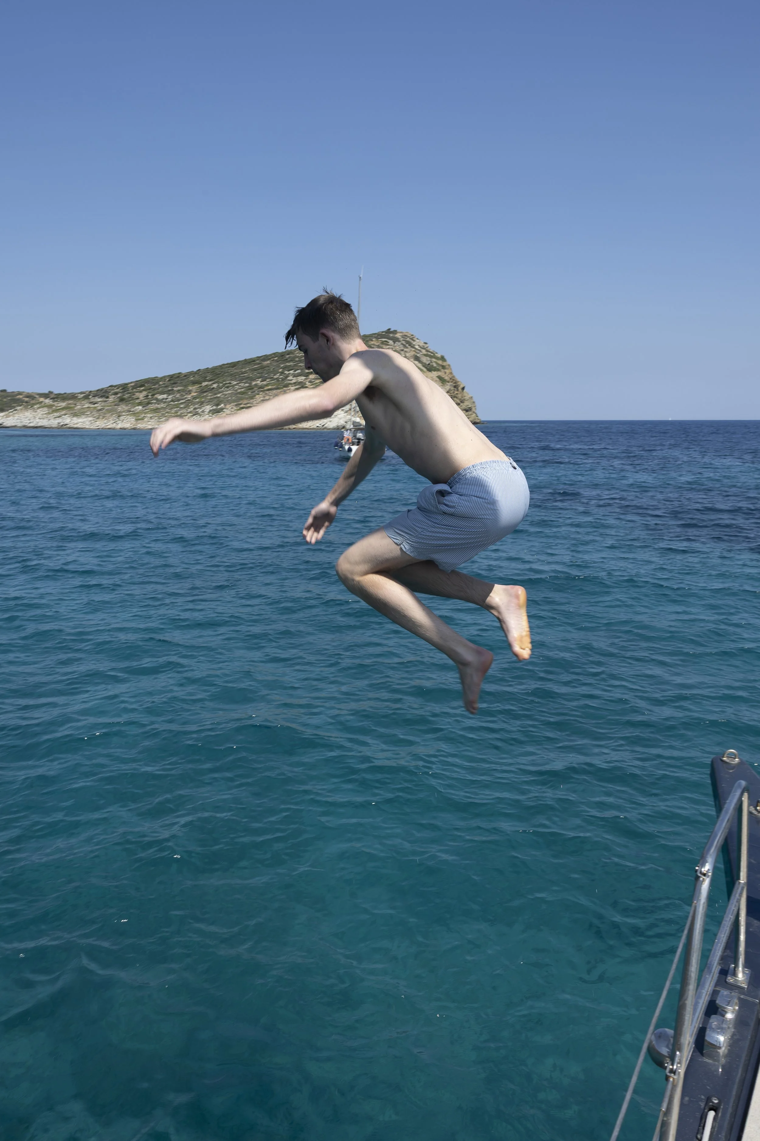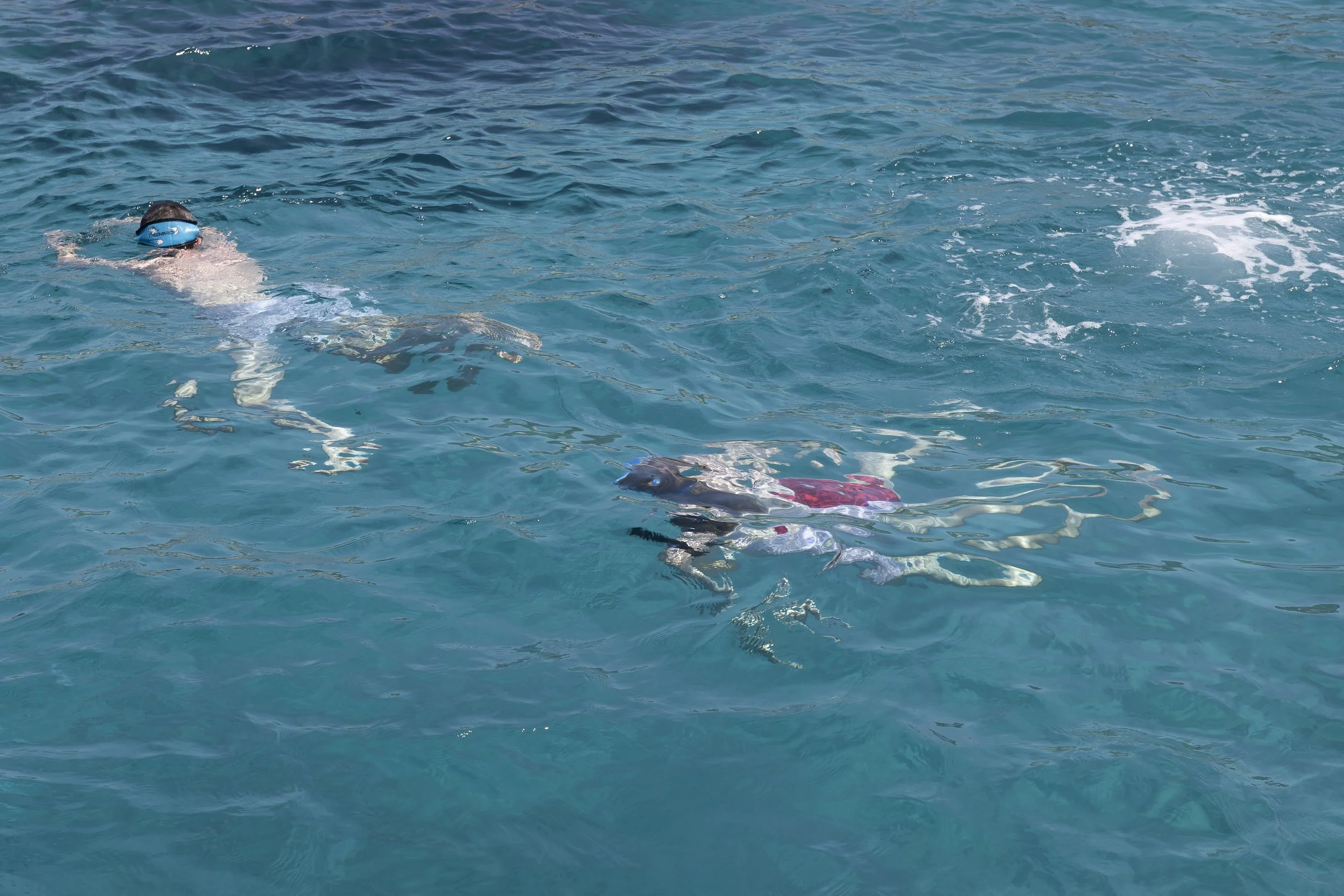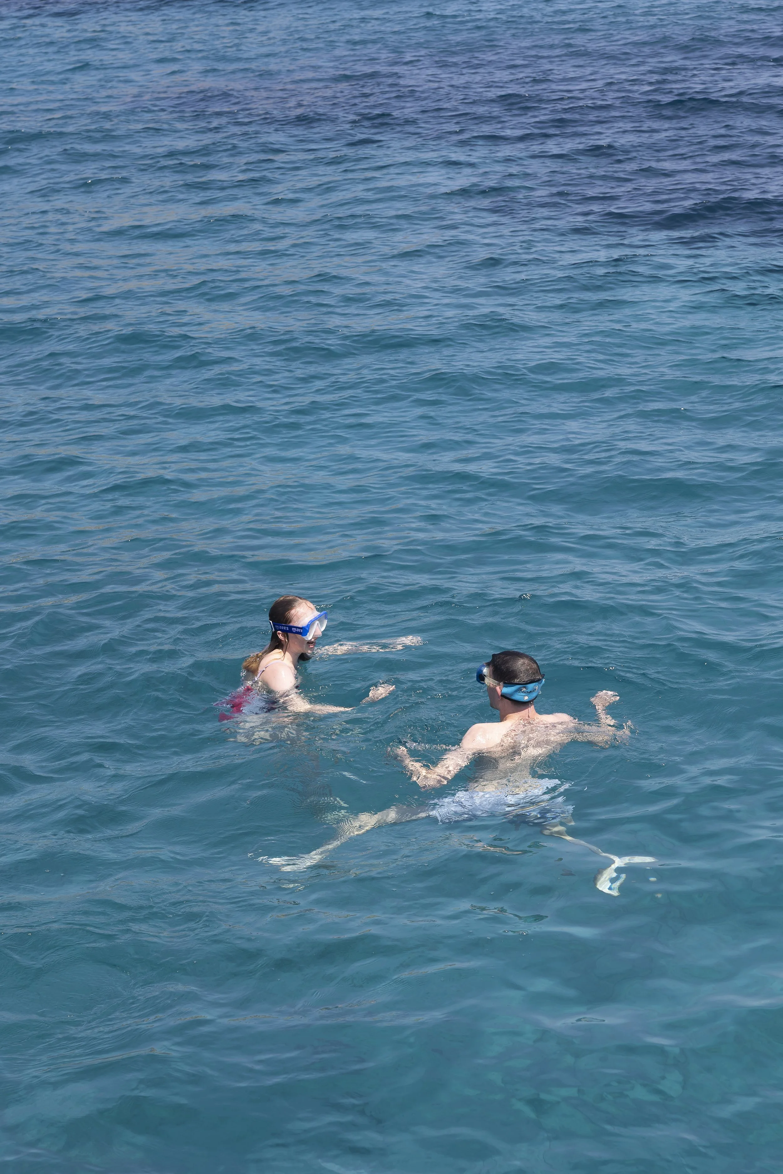 De namiddag brengt ontspanning. Lore en Mats verkennen snorkelend de rotsen, Wouter zwemt de mijl naar het strand en terug. De eigenaars van groter speelgoed zoeken vertier met bootjes en jetskis allerhanden.