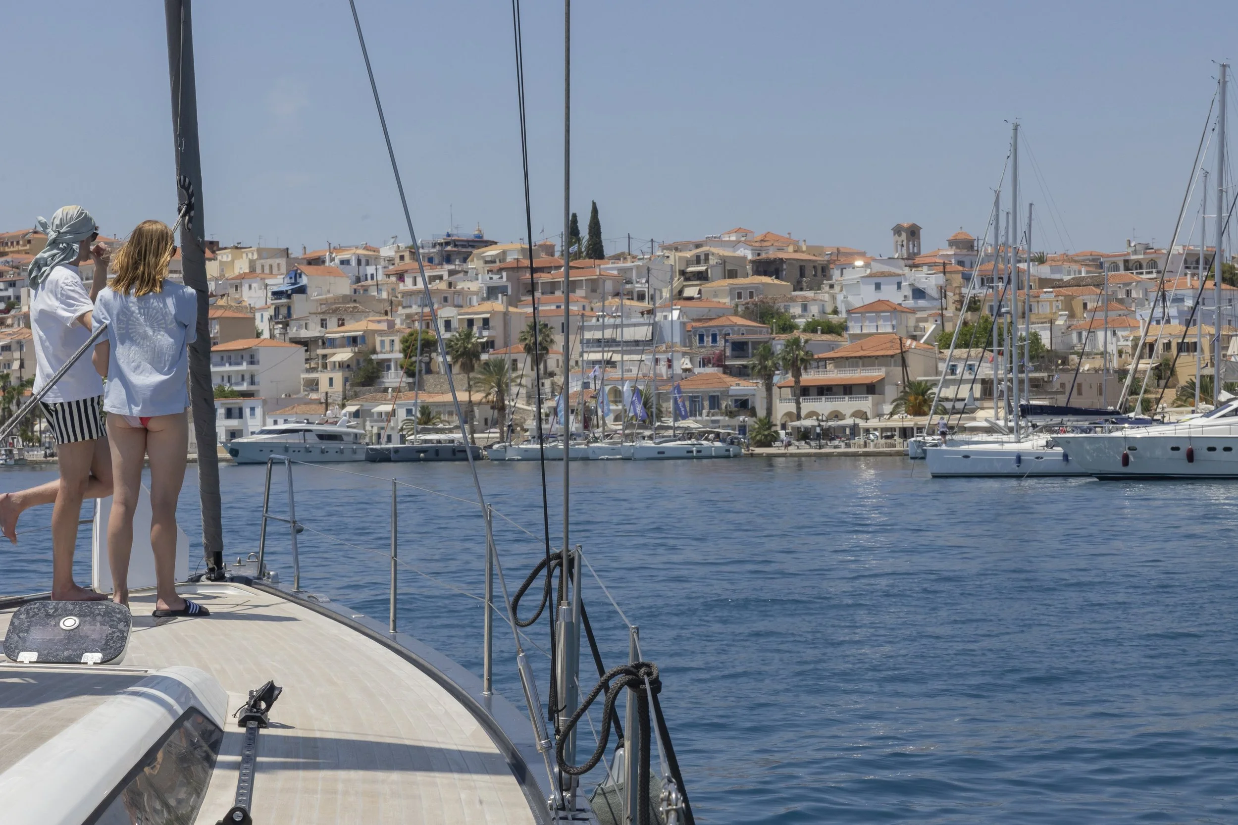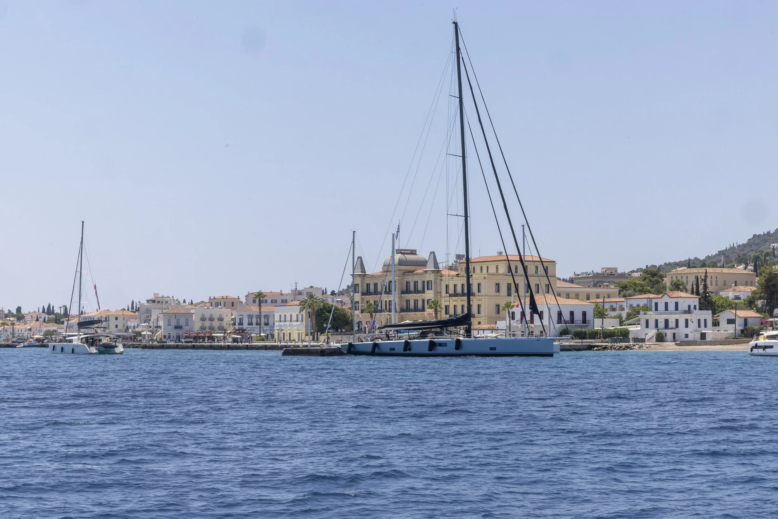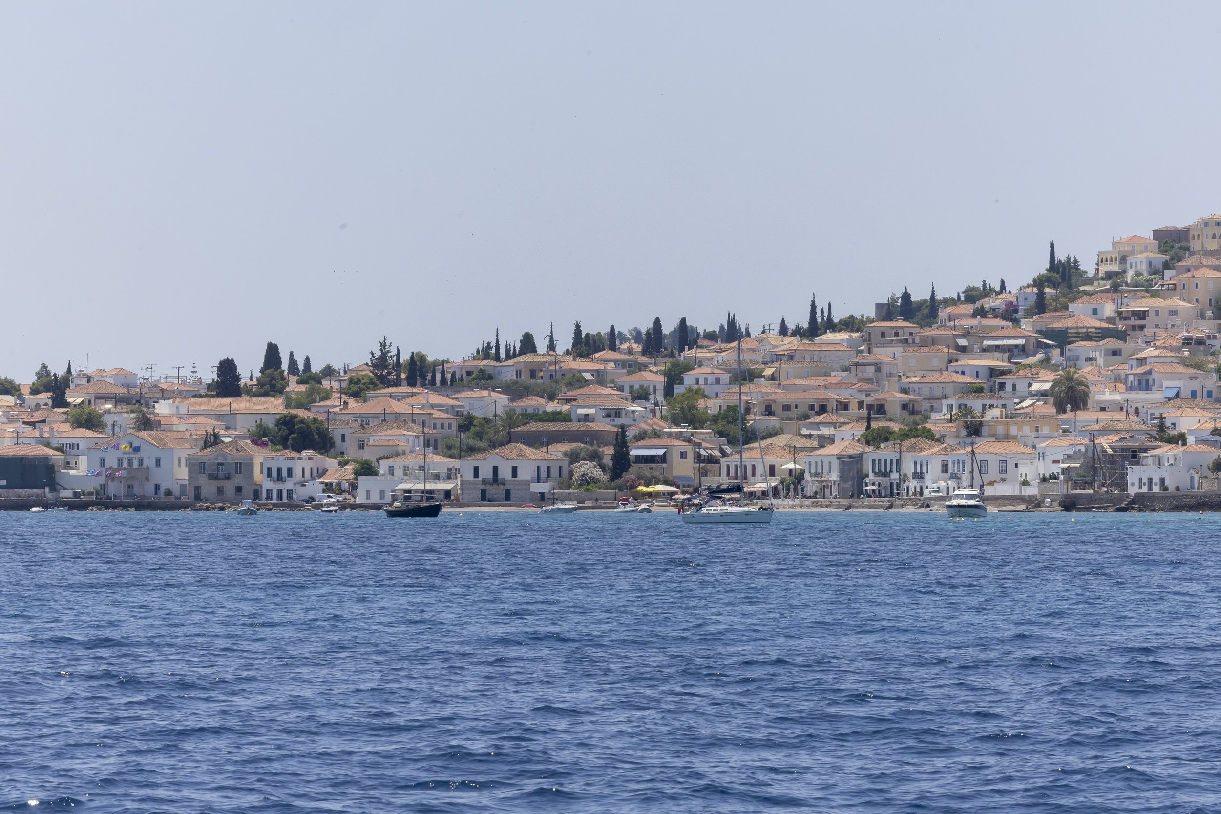 De volgende ochtend varen we uit, globaal terug in de richting van Olympic Marine, maar voor deze dag slechts een deel van dat traject. Volgens de Griekse Pilot biedt Spetses onvoldoende mogelijkheden en diepgang om aan te meren met Minke Balaena. Het was echter een aanbevolen stopplaats van de Griekse collega’s van Lore. We plannen er langs te varen om de sfeer even op te snuiven, en daarna door te varen naar Ermioni.