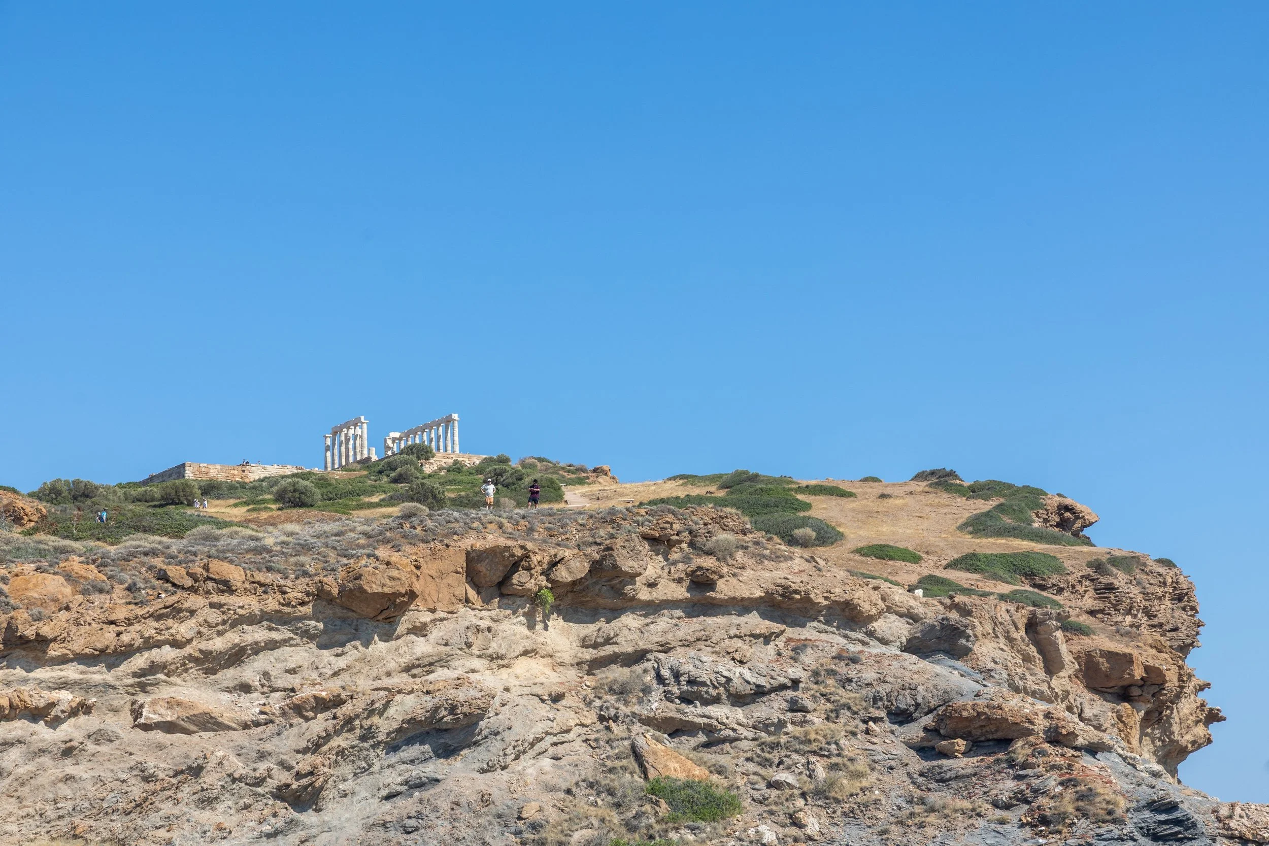De namiddag is al flink gevorderd wanneer we de baai van Sounion bereiken, het meest zuidelijke punt van Attica, waar de tempel van Poseidon nag steeds geduldig staat te pronken.
