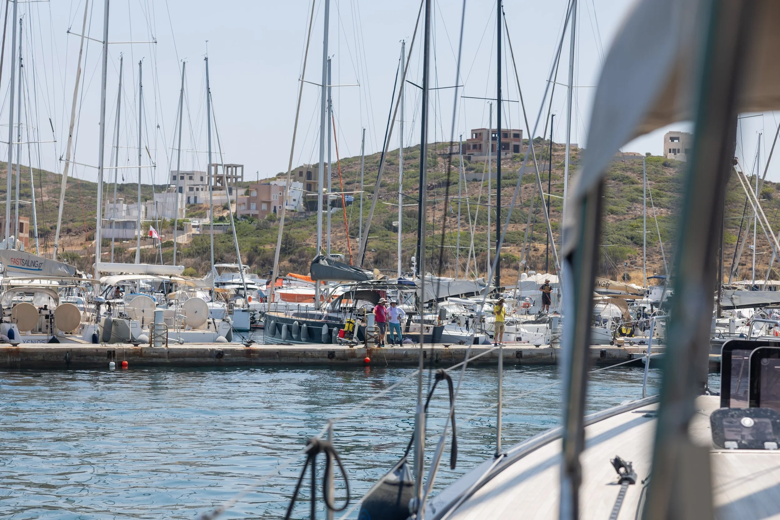 Van Fast Sailing leren we dat de wind binnen de haven wel meevalt. Zelf aanmeren dus, met dinghy assistance.