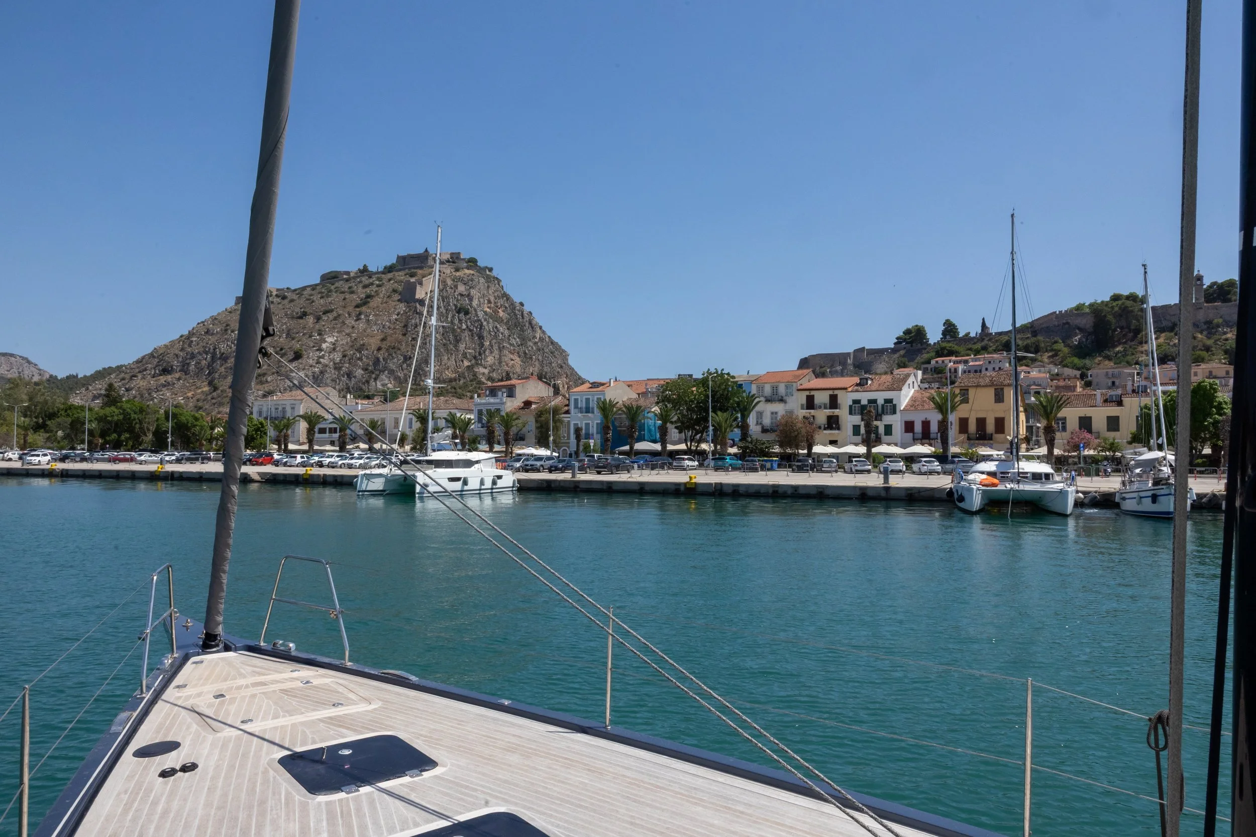 Het eerste wat we zien wanneer we Nafplion naderen, zijn de forten die de stad bewaken: