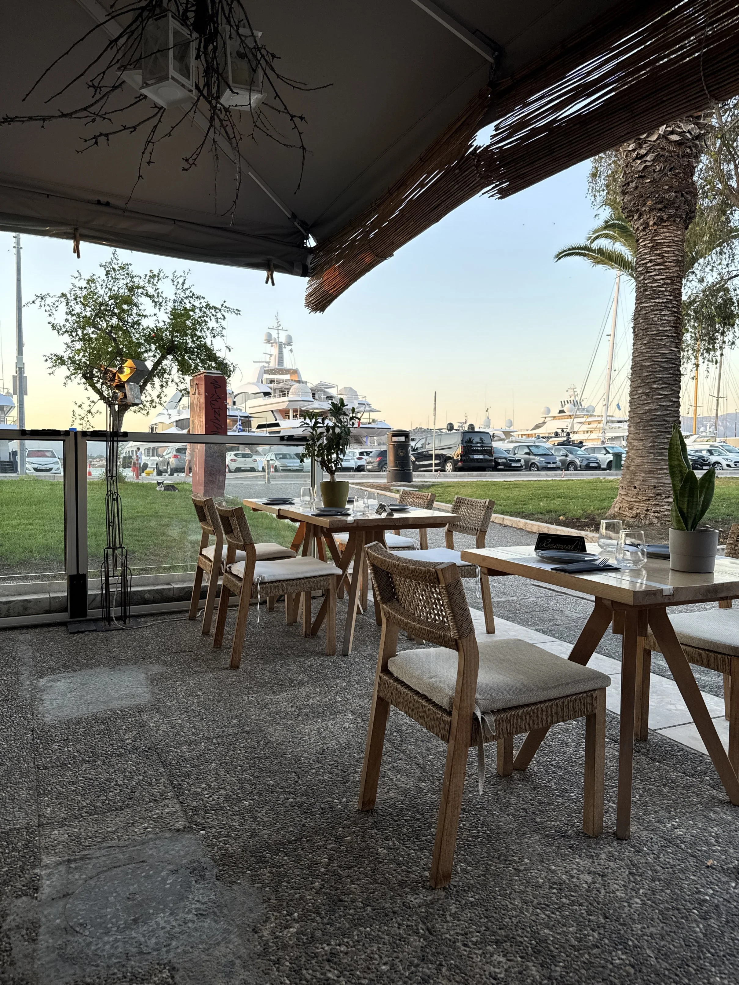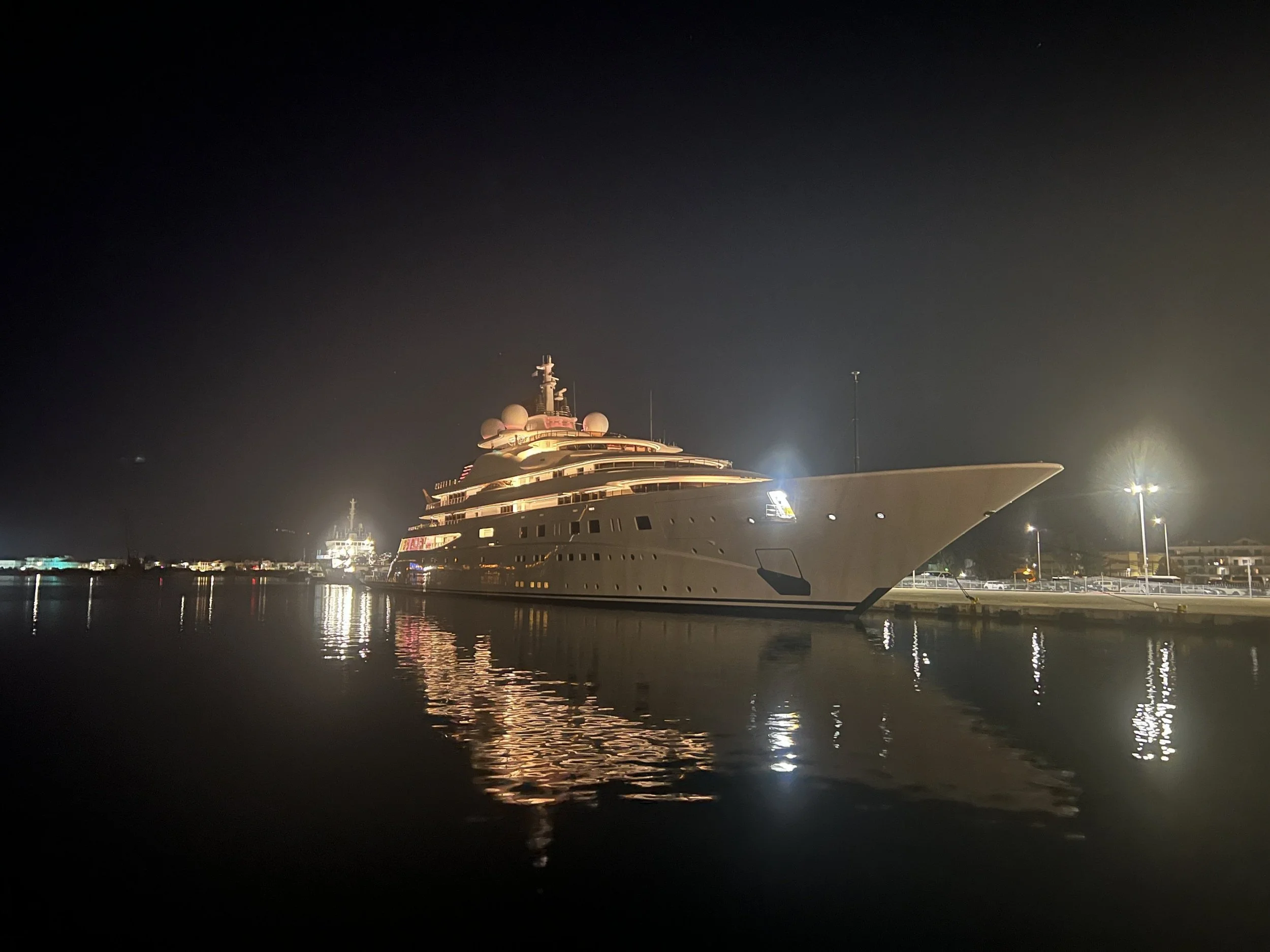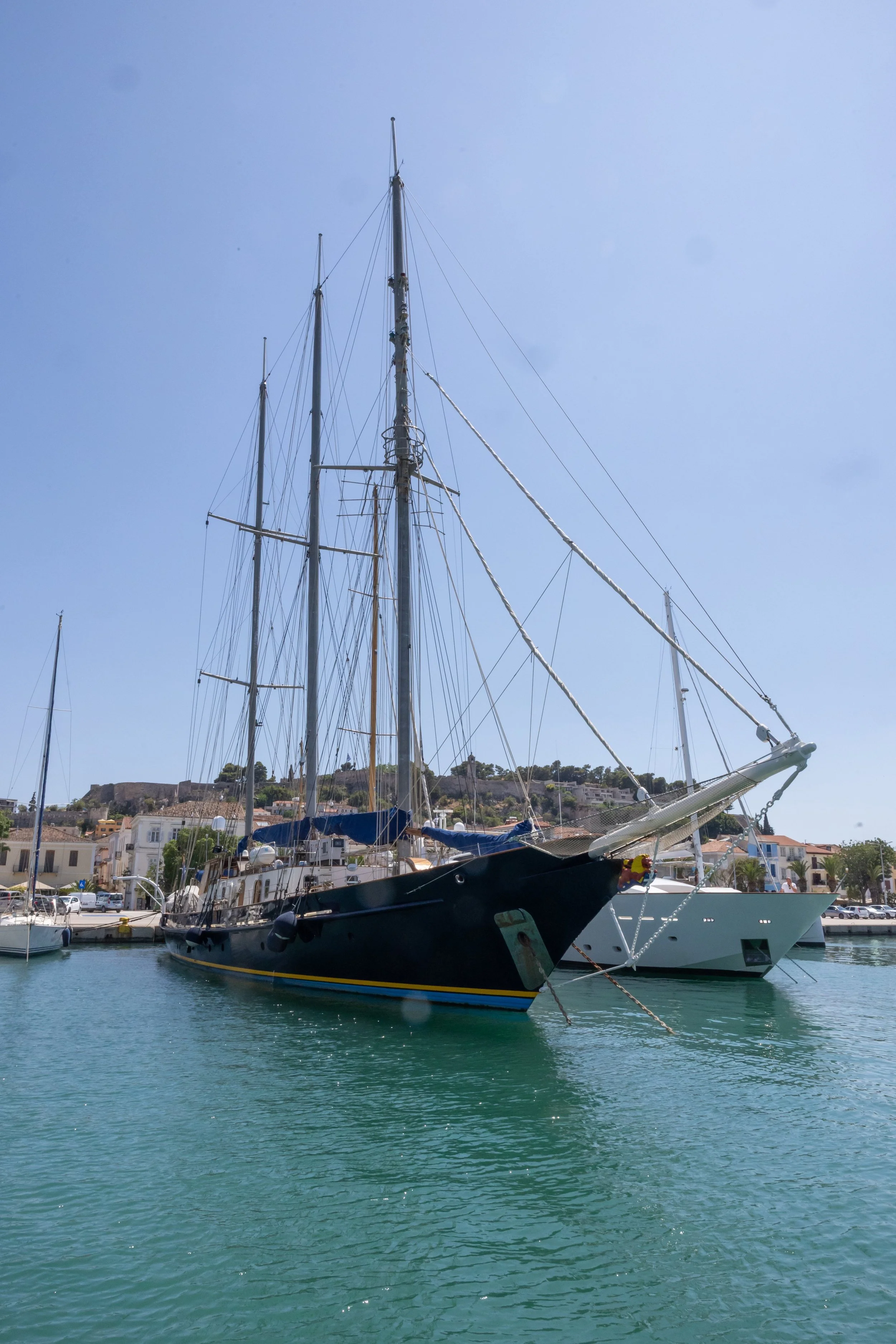 Bij het binnenvaren van de haven passeren we een indrukwekkende driemaster. Er zijn nog veel vrije plaatsen in de haven, maar we worden gevraagd helemaal achteraan aan te sluiten, dichtbij een gigantisch motorjacht.