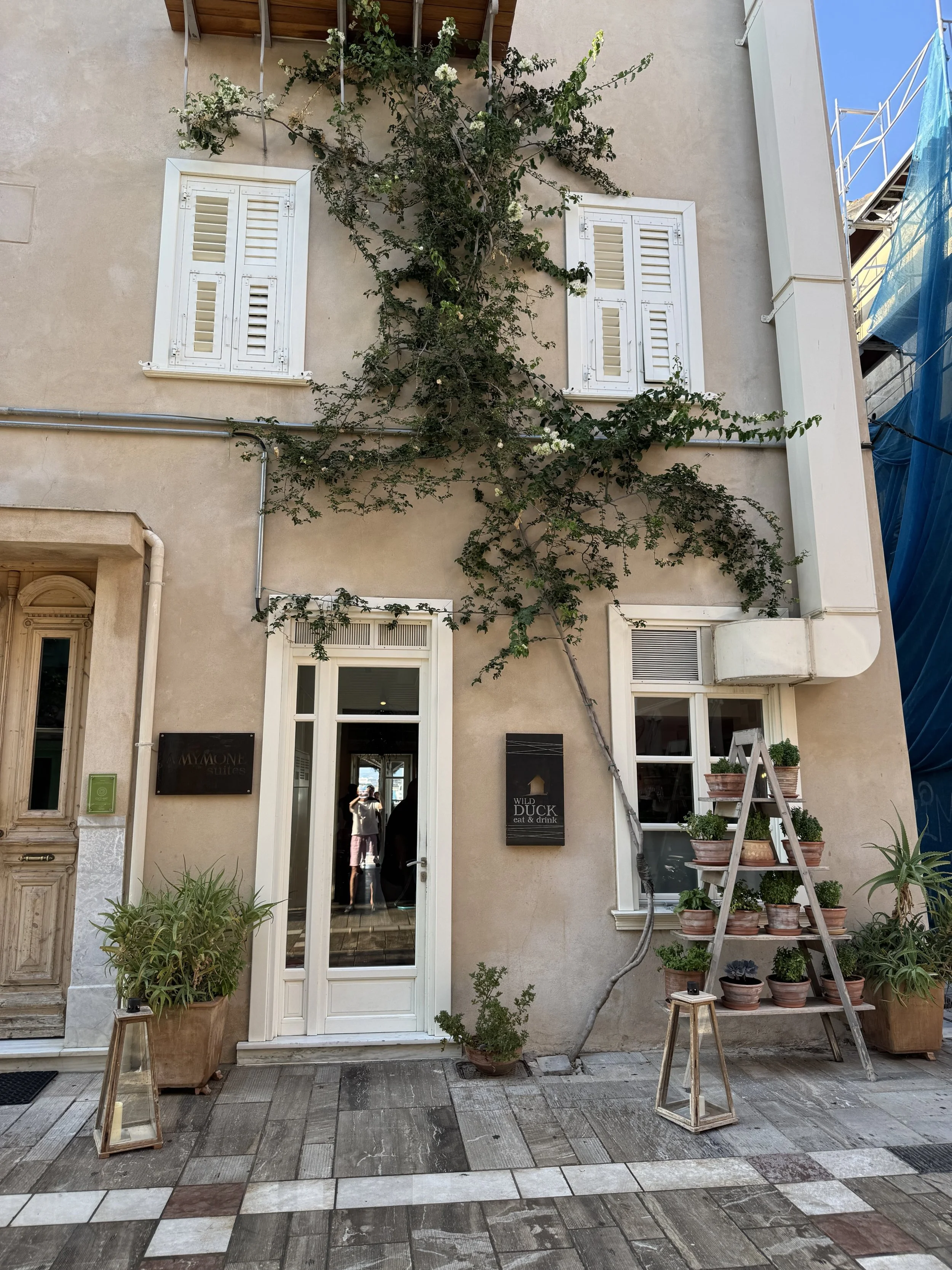 Zonder de wind tijdens het varen is de namiddag ondraaglijk warm. Te warm om op de boot te blijven. Wanneer we de airco aanzetten, geeft die een "high pressure alert". We zoeken wat afleiding en verkoeling in de schaduwrijke straatjes vlakbij de haven.