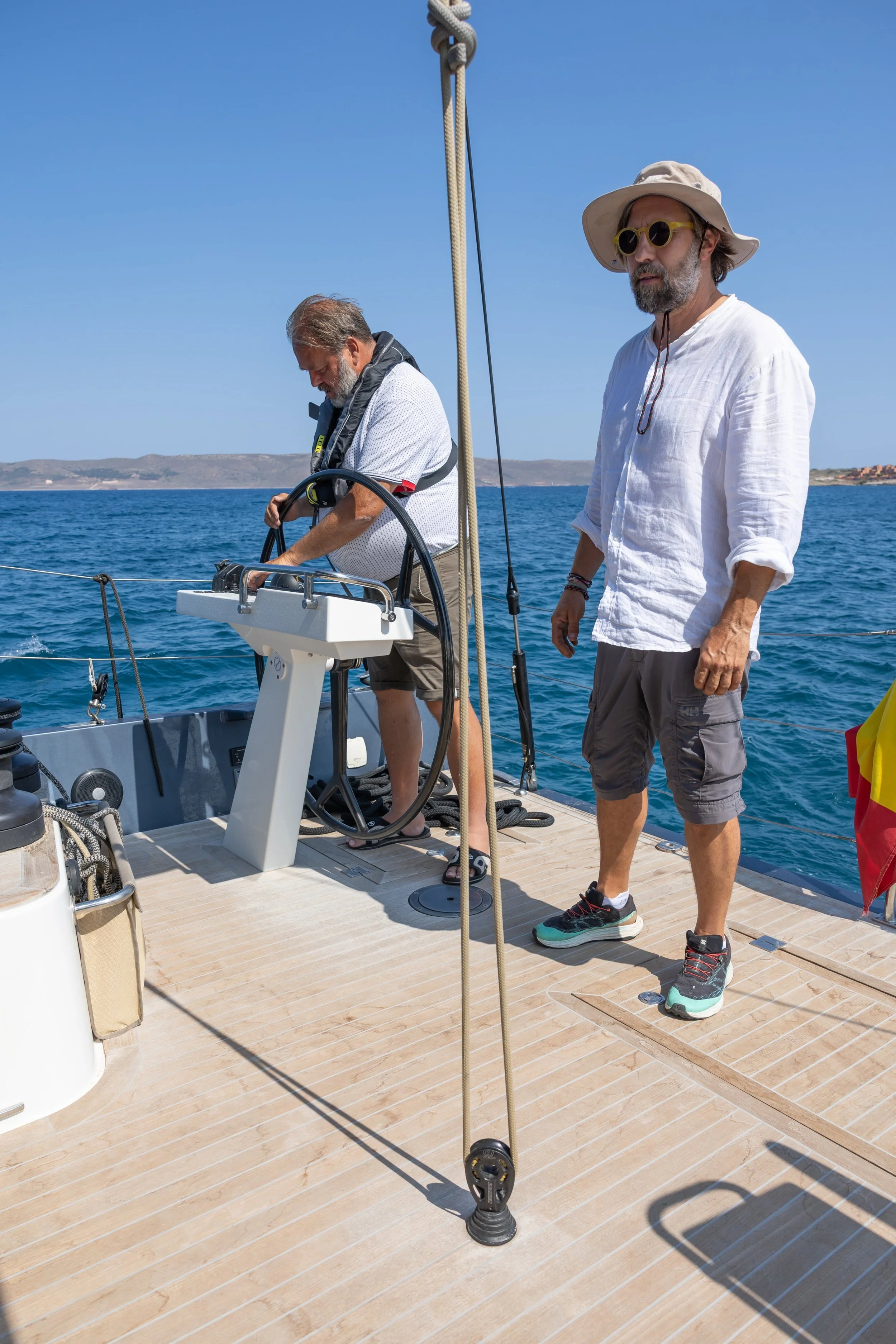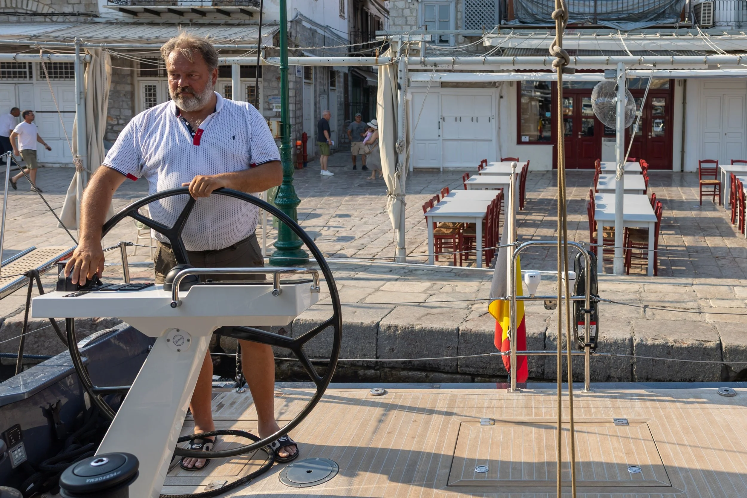Wouter stelt voor het aanlegmanoeuver zelf uit te voeren, met toezicht van Nicolas. Die maalt er niet om en haalt onverschillig de schouders op.