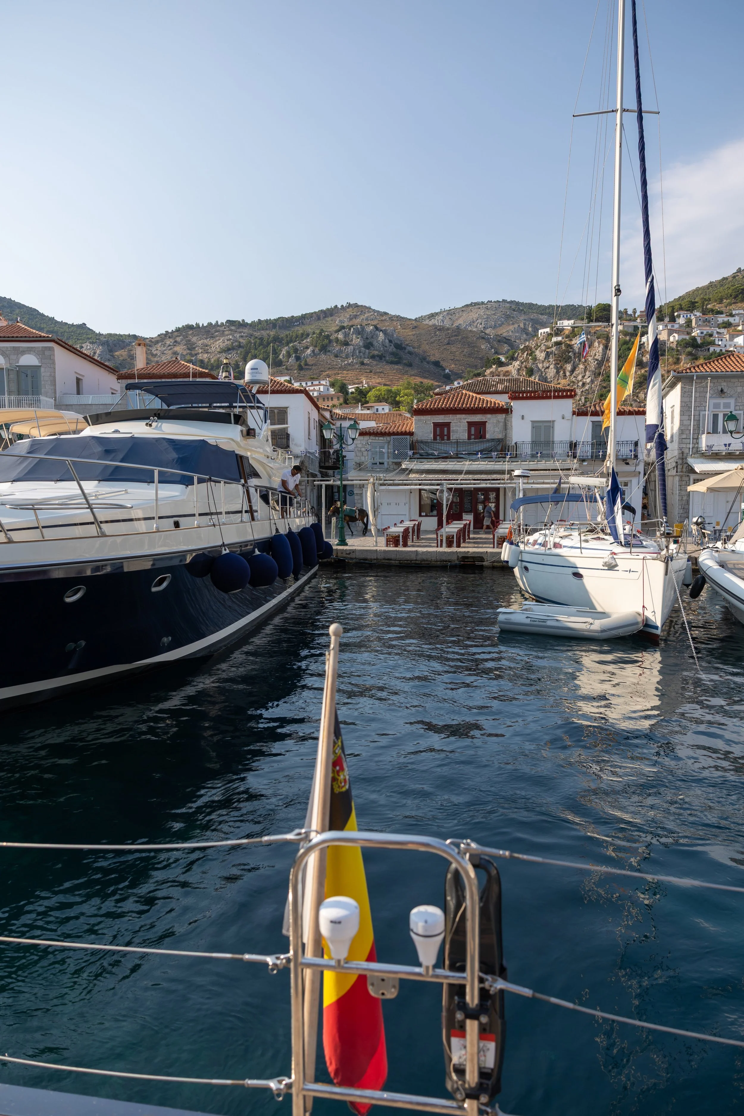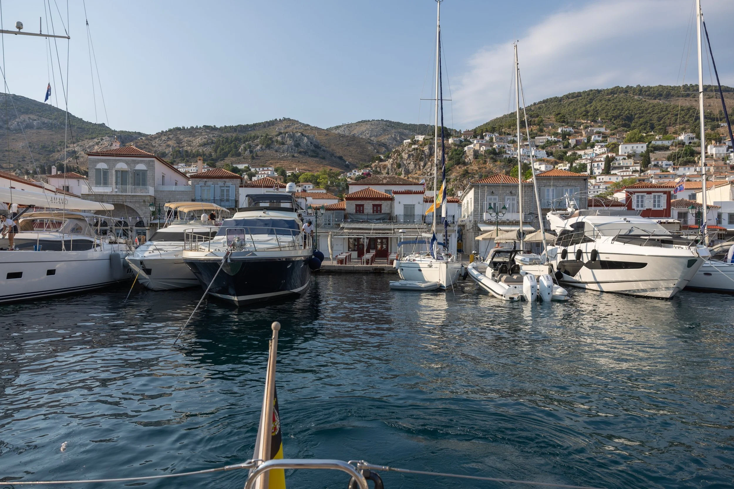 Wanneer we de ligplaats in Hydra verlaten, ligt een kandidaat al klaar voor de opvolging. De aanliggende boten eigenen zich de vrijgekomen ruimte onmiddellijk toe. We wensen onze opvolger veel succes.