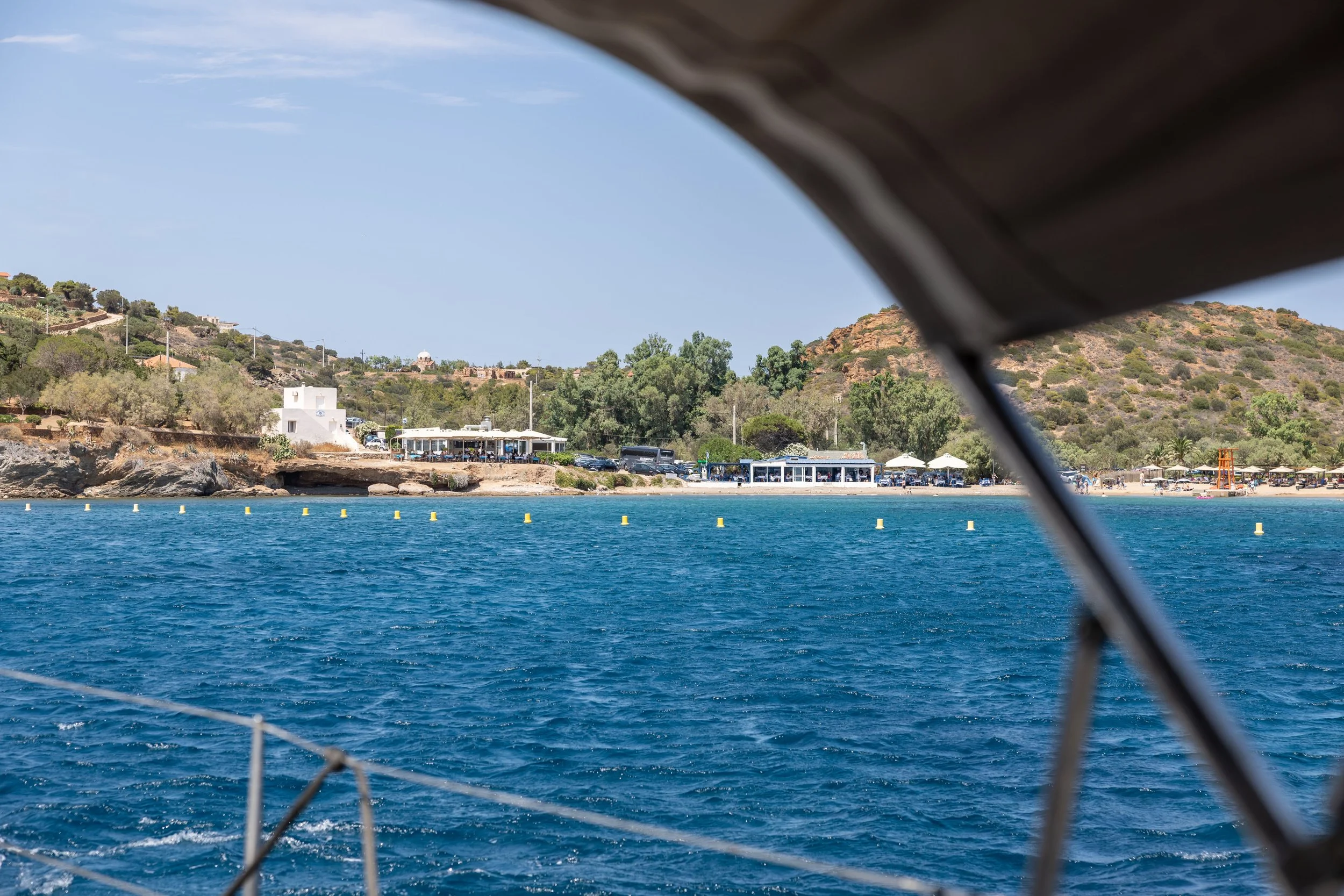Volgens afspraak brengen we Fast Sailing op de hoogte van onze verwachte aankomsttijd. Ze vragen echter zaterdag zo laat mogelijk binnen te komen, omwille van de weekendwissel van de charters. Dat brengt ons ook deze keer weer naar de baai van Sounion. De wind bracht vele zeevaarders naar de baai, en het is druk in de baai.