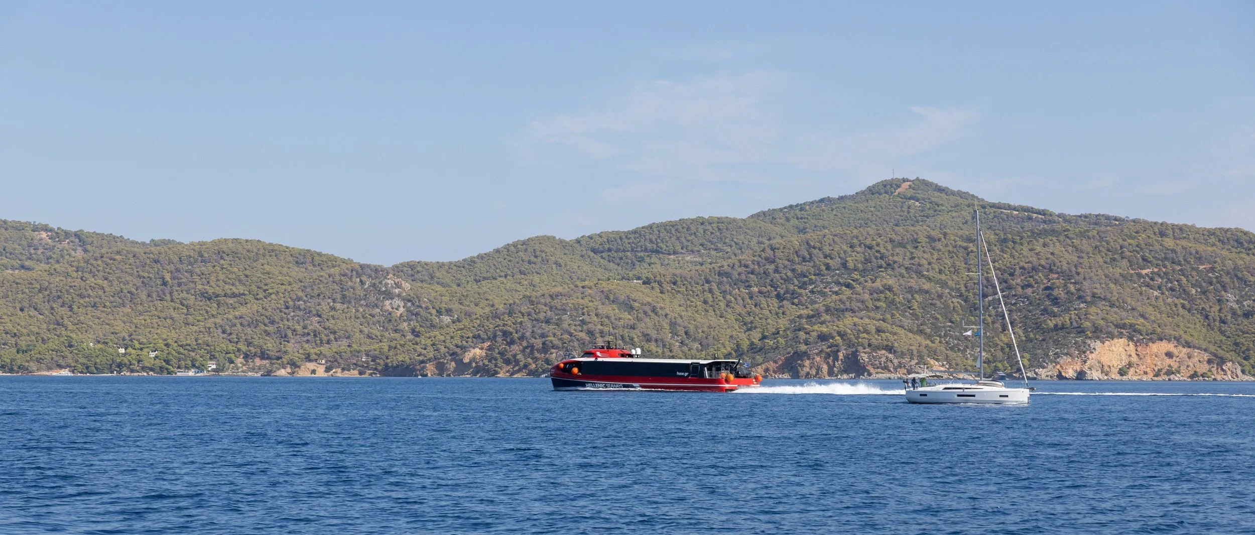 Omdat, zoals gezegd, onze volgende stop in een baai bij Porto Cheli is, kiezen we voor de kademuur, waar water en elektriciteit basisrechten zijn, en niet voor het anker.