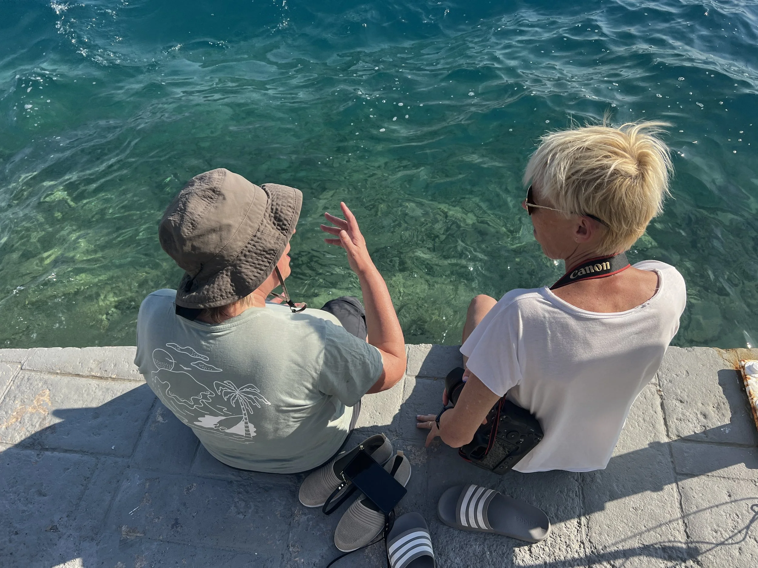 We keren terug naar de kademuur, aan de andere kant van Ermioni. De buren brengen lawaai tot in de kleine uurtjes. De zee brengt stilte, onverschillig en geduldig. Tussen beide werelden dobberen wij. Wakker, maar vrij.