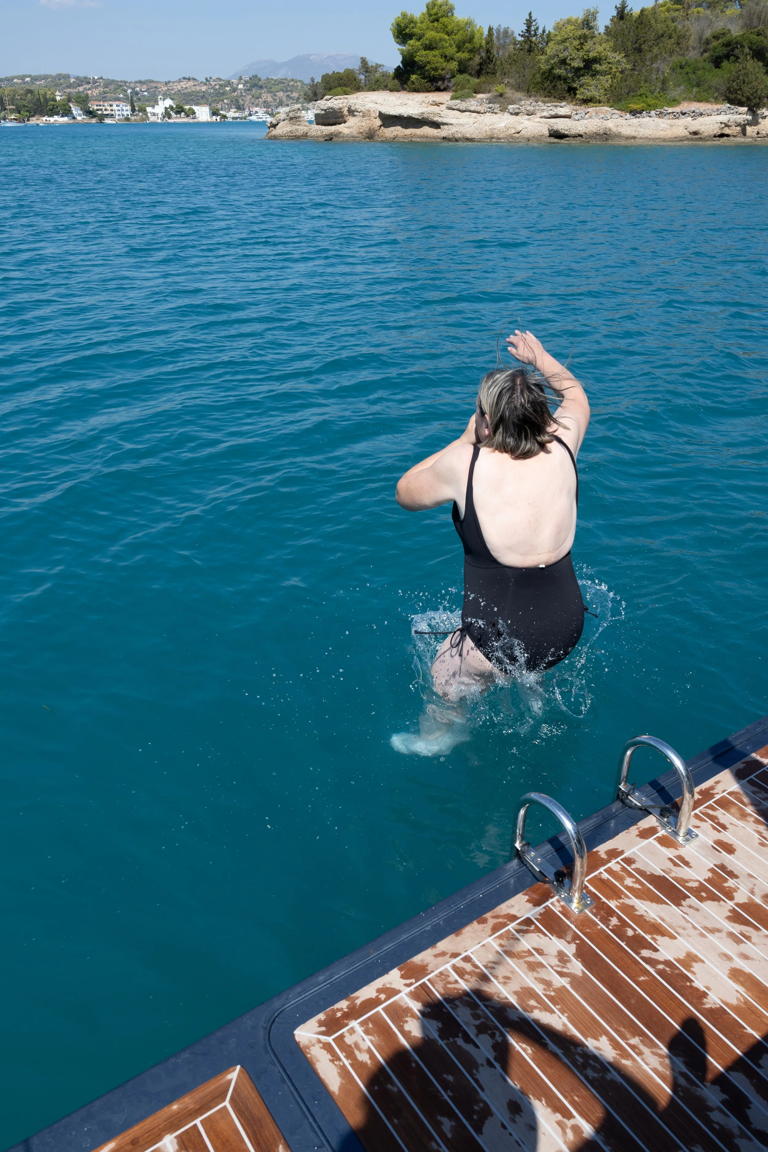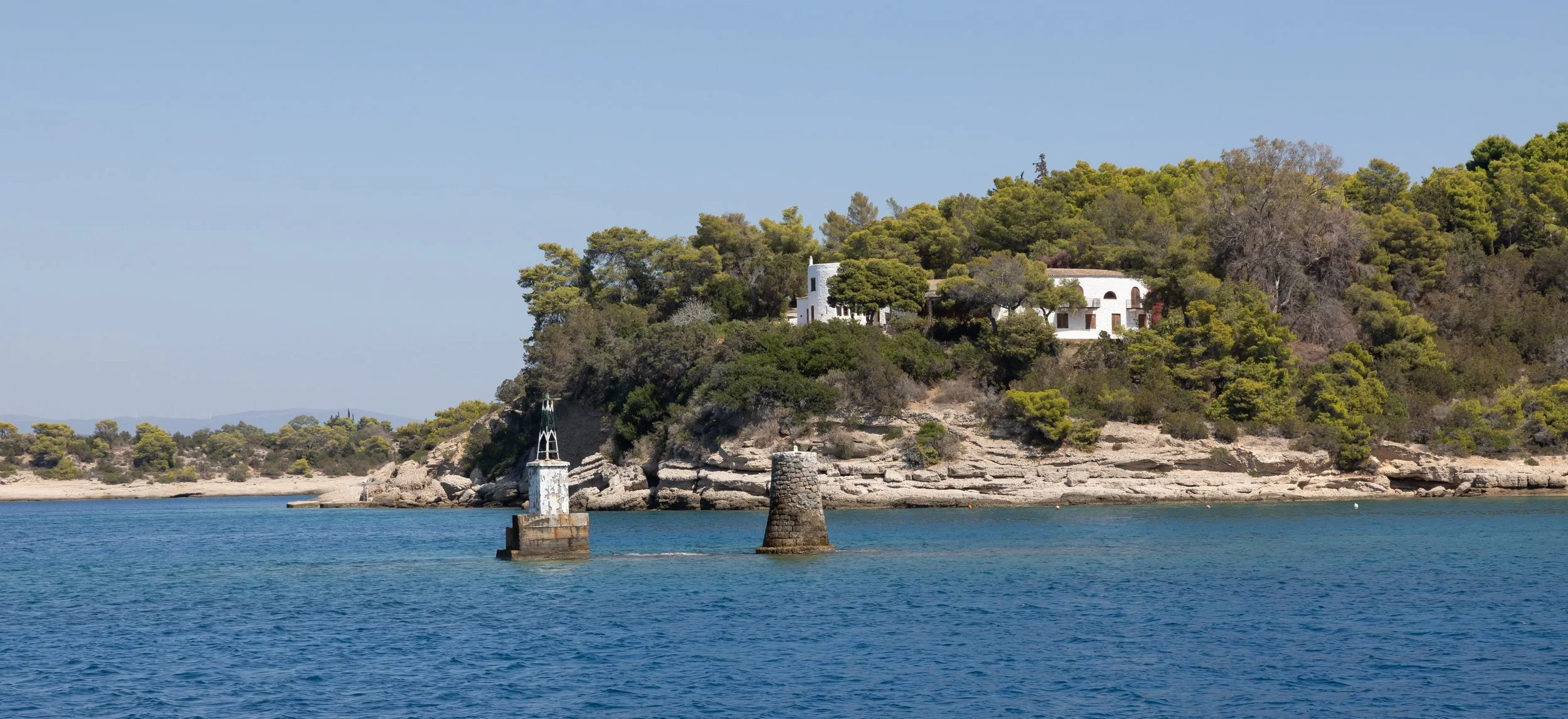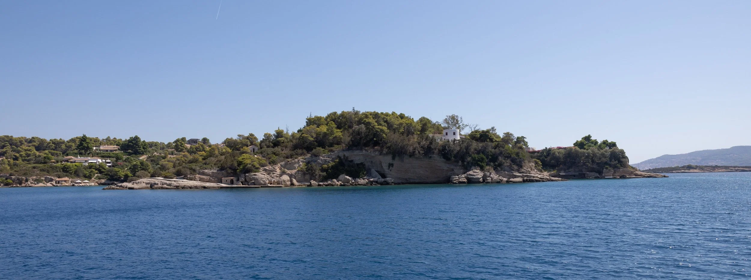 Tussen het eiland Dokos en het vasteland valt de wind grotendeels weg, en wordt hij ook erg veranderlijk. We zetten de motor bij, zonder de zeilen te strijken, en duwen ons zo door de chaotische wind in de zeeëngte.