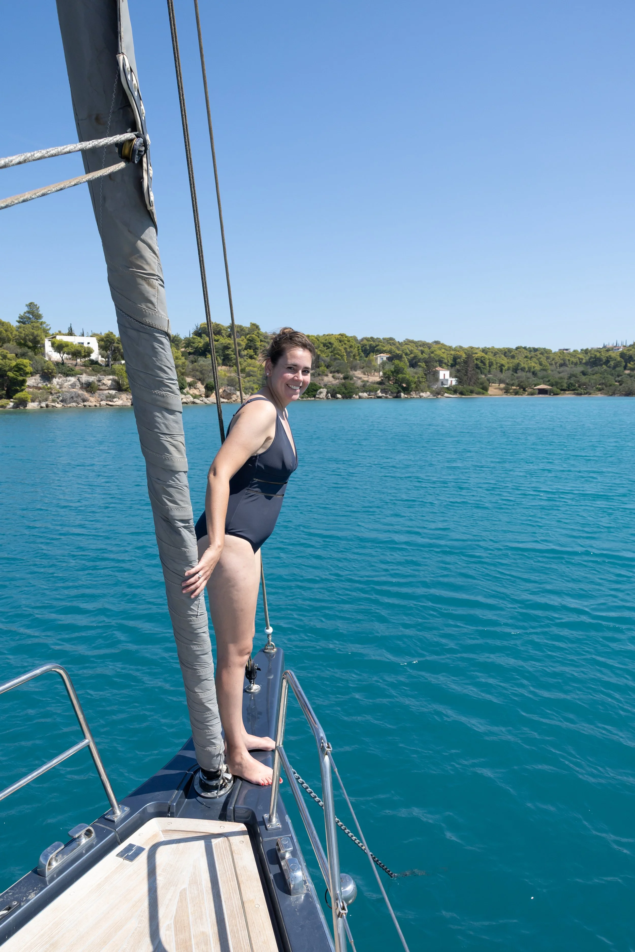 Er ligt slechts één boot voor anker in onze vertrouwde baai, en we vinden makkelijk een plaatsje. Tijdens het ankeren, wanneer we in achteruit schakelen, valt de motor stil. Even opnieuw starten. Probleem verholpen.