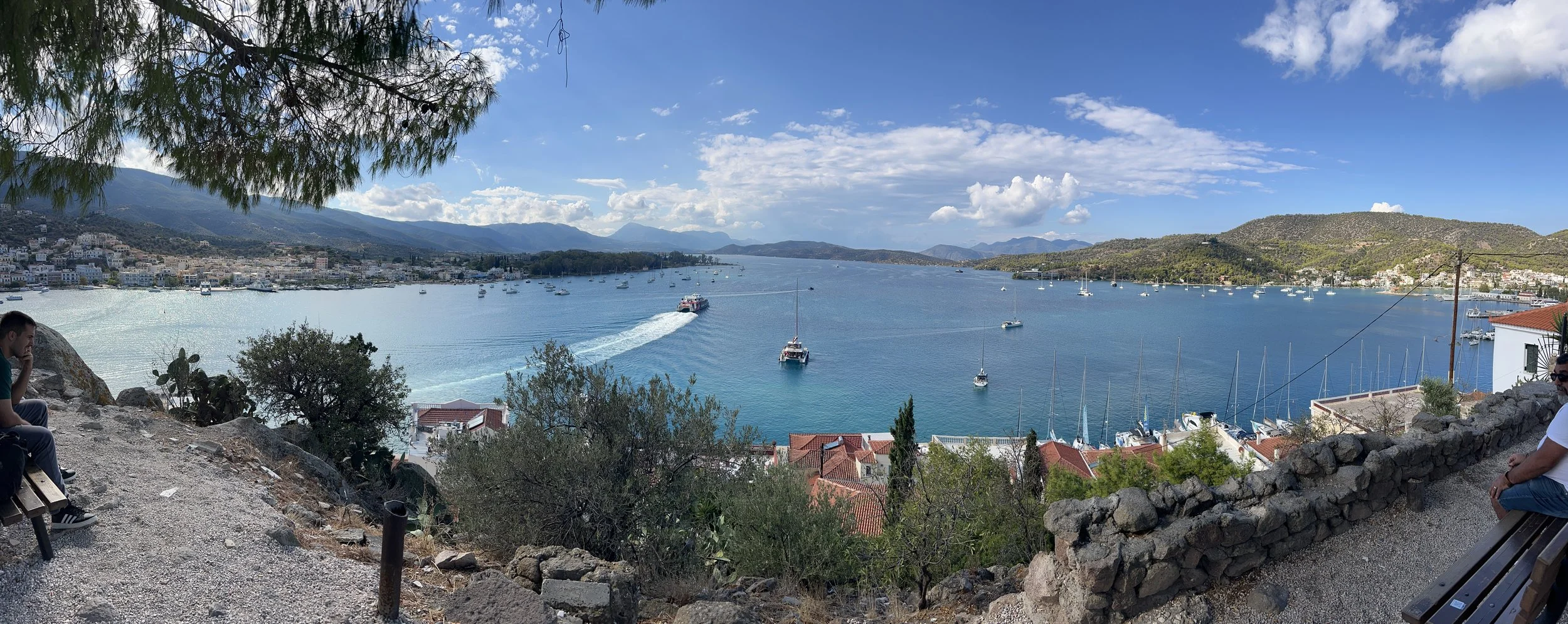 We besluiten de dag in Poros door te brengen, en nog een nacht te blijven. Dat geeft Rita en de professor de kans Poros te verkennen. Zo laten we het ergste regenweer ook voorbij trekken.
